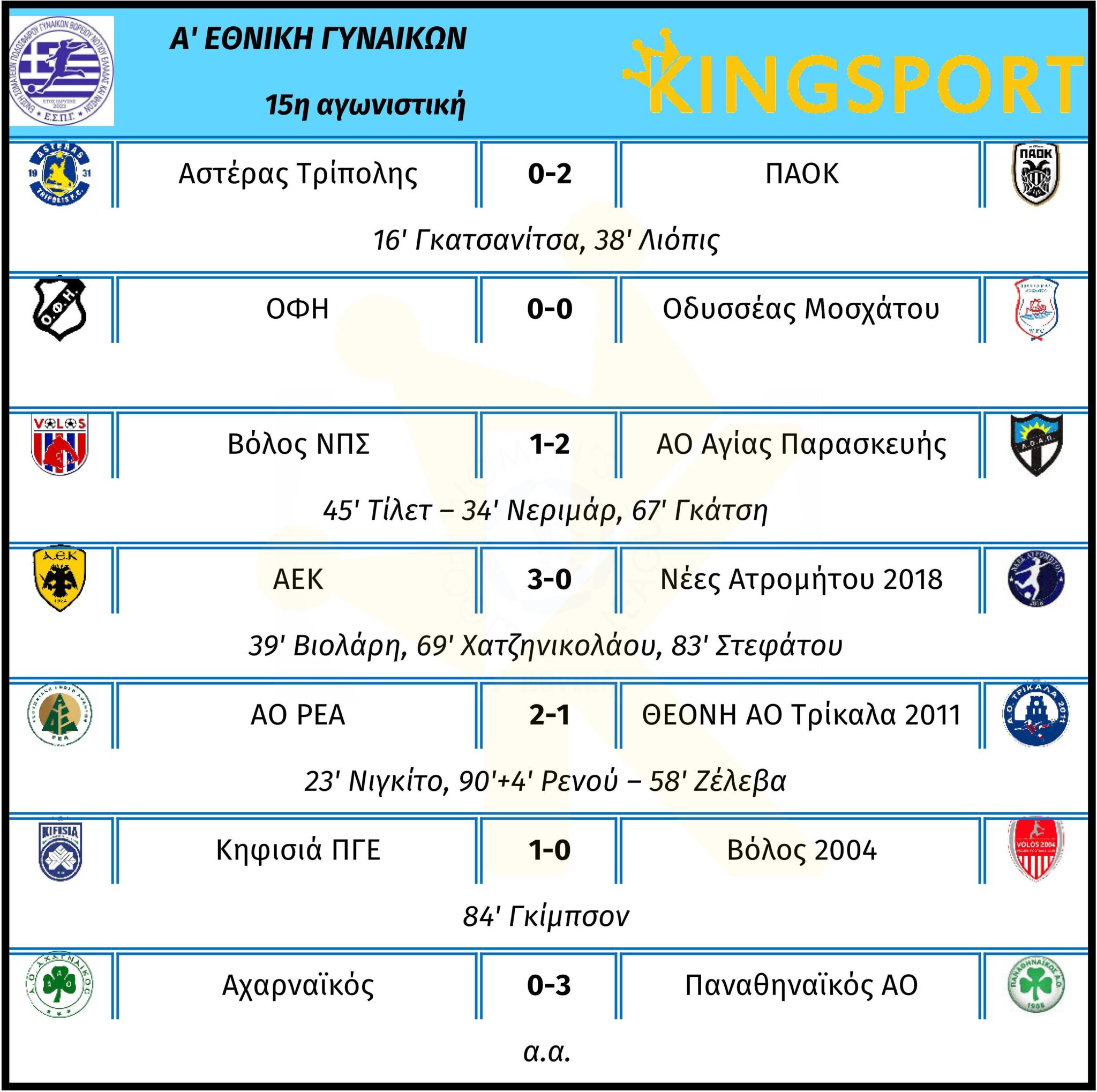 Α’ Εθνική Γυναικών – 15η αγωνιστική
