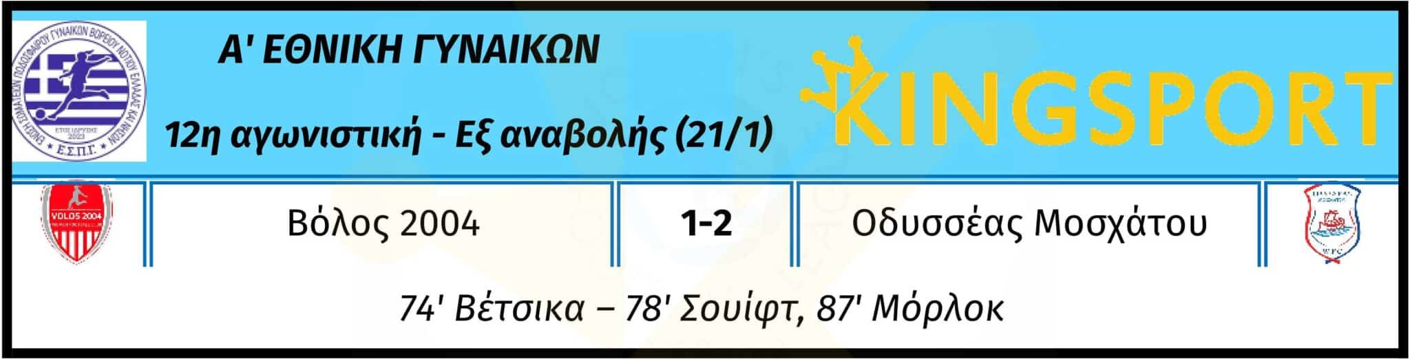 Την Τετάρτη 21 Ιανουαρίου, ο Οδυσσέας Μοσχάτου νίκησε με 1-2 τον Βόλο 2004 σε εξ αναβολής αναμέτρηση της 12ης αγωνιστικής.