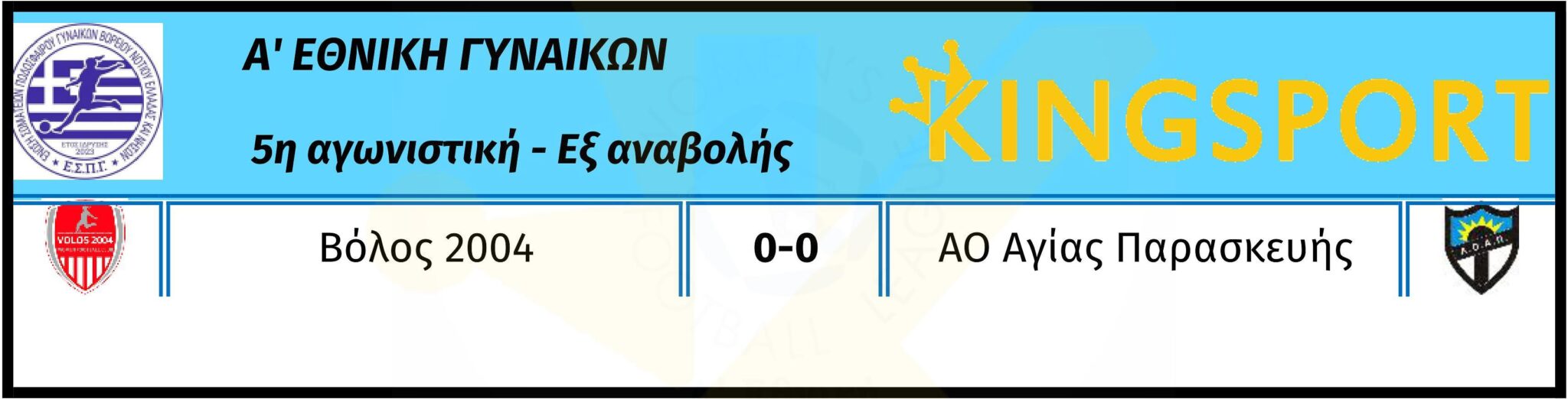 Την Τετάρτη 5/11 διεξήχθη ο εξ αναβολής αγώνας της 5ης αγωνιστικής, Βόλος 2004-Αγία Παρασκευή 0-0.