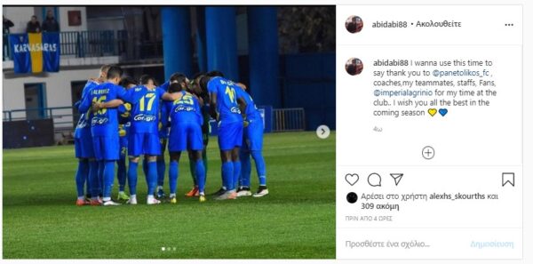 Ο Αμπιόλα Ντάουντα με ανάρτηση του στο Instagram αποχαιρέτισε τους συμπαίκτες του στον Παναιτωλικό και τον κόσμο των καναρινιών .