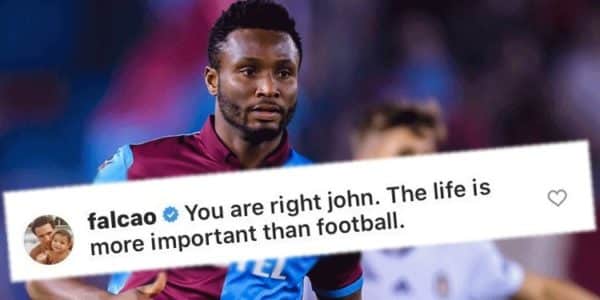 Ο Φαλκάο απάντησε το ποστ του Νιγηριανού:  «Έχεις δίκιο, Τζον. Η ζωή είναι πιο σημαντική από το ποδόσφαιρο».