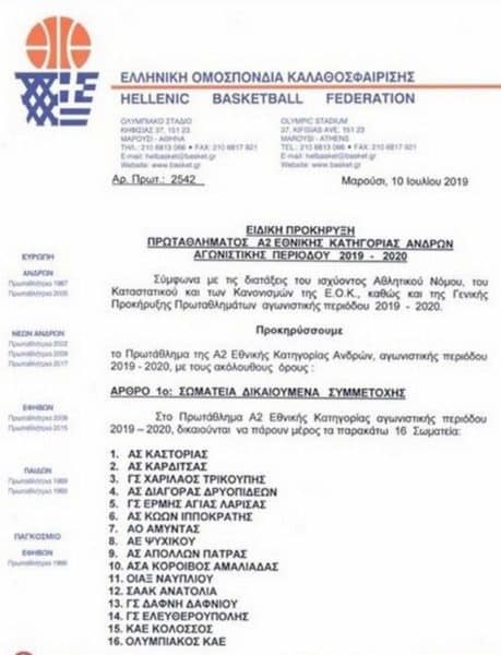Τη θέση της νέας προκήρυξης πήρε η παλιά στο σάιτ της ΕΟΚ κι έτσι αντί για Ολυμπιακό και Κολοσσό έχουμε «Ομάδα Χ» και «Ομάδα Ψ».
