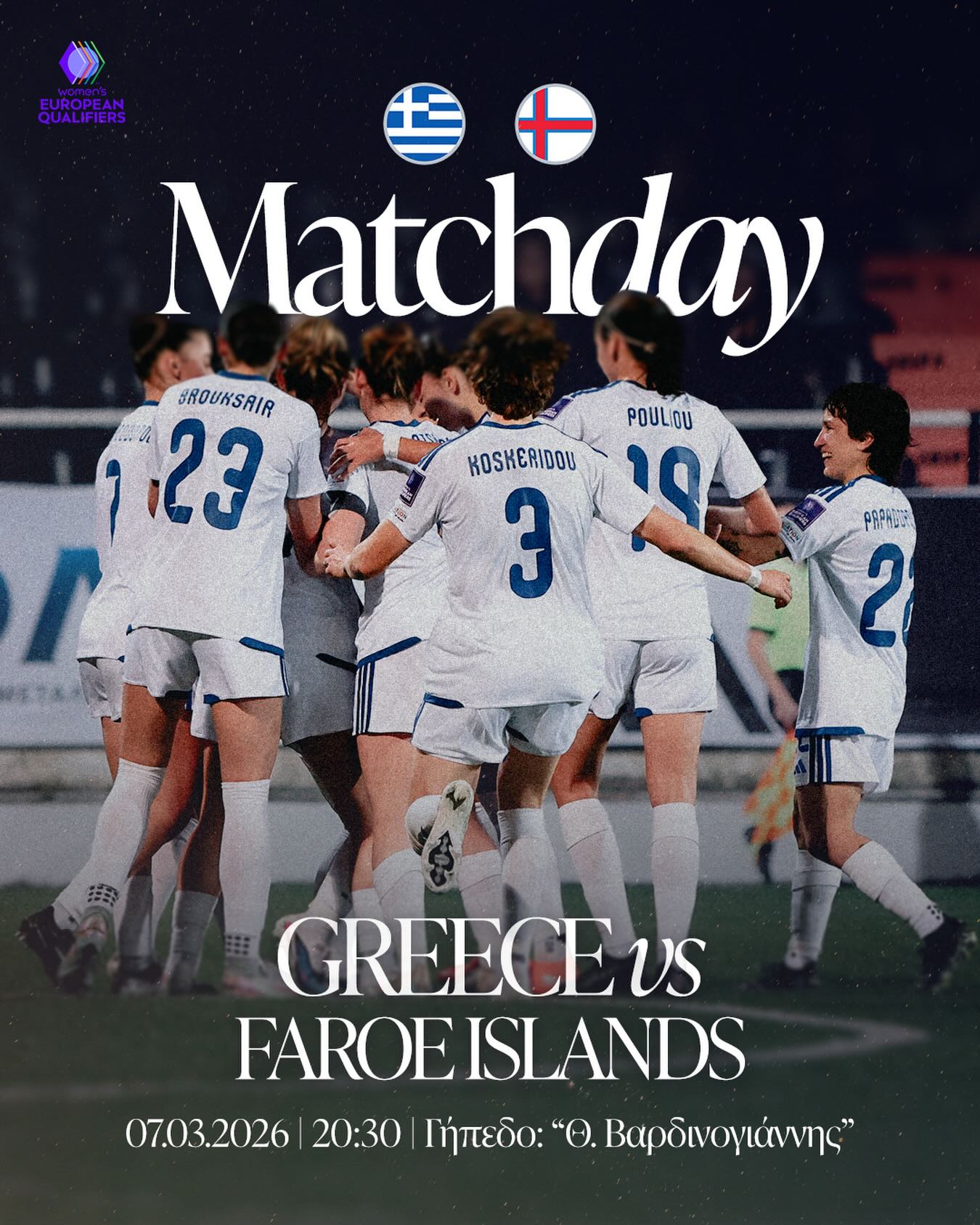 Η Εθνική Ελλάδας Γυναικών υποδέχεται τα Νησιά Φερόε (Σάββατο 7/3, 20:30) στο “Θ. Βαρδινογιάννης”, στο Ηράκλειο της Κρήτης, για τη 2η αγωνιστική της League C των προκριματικών του Παγκοσμίου Κυπέλλου.