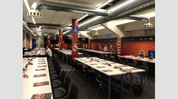 Ήδη το λογότυπο του Final 4 κοσμεί το κέντρο του γηπέδου ενώ ολοκληρώθηκαν οι εργασίες στους υπόλοιπους χώρους, τα δημοσιογραφικά και τους διαδρόμους.