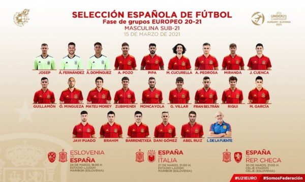 Τα φαβορί και στην τρέχουσα διοργάνωση είναι τα …γνωστά αν και σε παραπάνω από δύο μήνες που θα γίνουν οι αγώνες νοκ άουτ είναι άγνωστο σε τι κατάσταση θα βρίσκονται οι ομάδες που θα έχουν περάσει στους προημιτελικούς. Η κάτοχος Ισπανία δεν θα αφήσει εύκολα τα σκήπτρα σε όποιον φιλοδοξεί να της τα αποσπάσει. Στην τεχνική ηγεσία και φέτος ο Luis de la Fuente που είχε οδηγήσει την προηγούμενη φουρνιά στην κορυφή πρόπερσι. Το τωρινό δυναμικό της “rojita” U21 ηλικιακά σε σημαντικό βαθμό συμπίπτει με εκείνο της U19 που πριν δύο χρόνια είχε κατακτήσει το Ευρωπαϊκό νέων στην Αρμενία. Πρωταγωνιστής τότε ο Ferran Torres της Manchester City που …δυστυχώς για την Ελλάδα έχει πάρει …προαγωγή στην ομάδα των ανδρών του Luis Enrique! Ωστόσο οι Abel Ruiz (Braga), Ander Barrenextea (Real Sociedad), Juan Miranda (Barcelona), Hugo Guillamon (Valencia), Alvaro Fernandez (γκολκίπερ Huesca) κλπ έχουν κάνει το βήμα από τη νέων στην ελπίδων. Ο De la Fuente ποντάρει πολλά ωστόσο και στην ποιότητα και τις παραστάσεις ανταγωνιστικών αγώνων των Marc Cucurella (Getafe), Brahim Diaz (AC Milan) , Alejandro Pozo (Eibar), Oscar Mingueza & Riqui Puig (Barcelona), Mateu Morey (B.Dortmund).