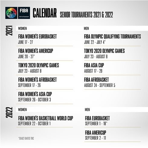 Για τον Σεπτέμβριο του 2022 μεταφέρθηκε το Ευρωμπάσκετ, όπως ανακοίνωσε η FIBA, ενώ τα προολυμπιακά τουρνουά για τις 22/6-4/7 του 2021.