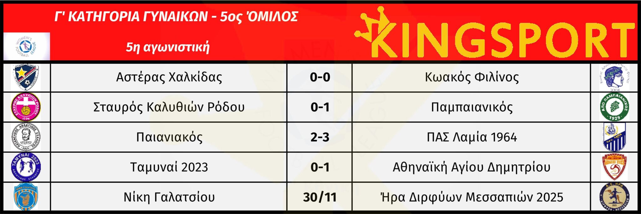 Οι αγώνες του Σαββατοκύριακου 22-23/11 στο Περιφερειακό Πρωτάθλημα Γ’ Κατηγορίας Γυναικών 2025-26.