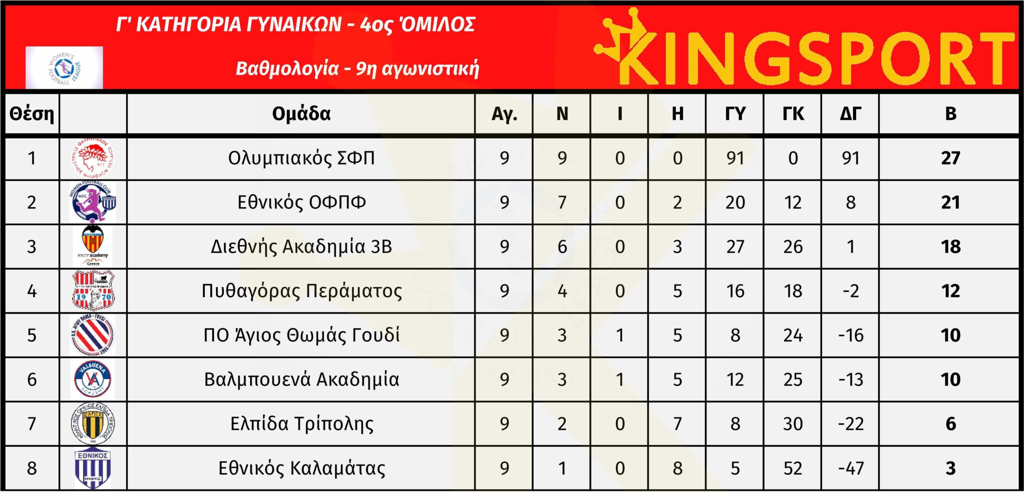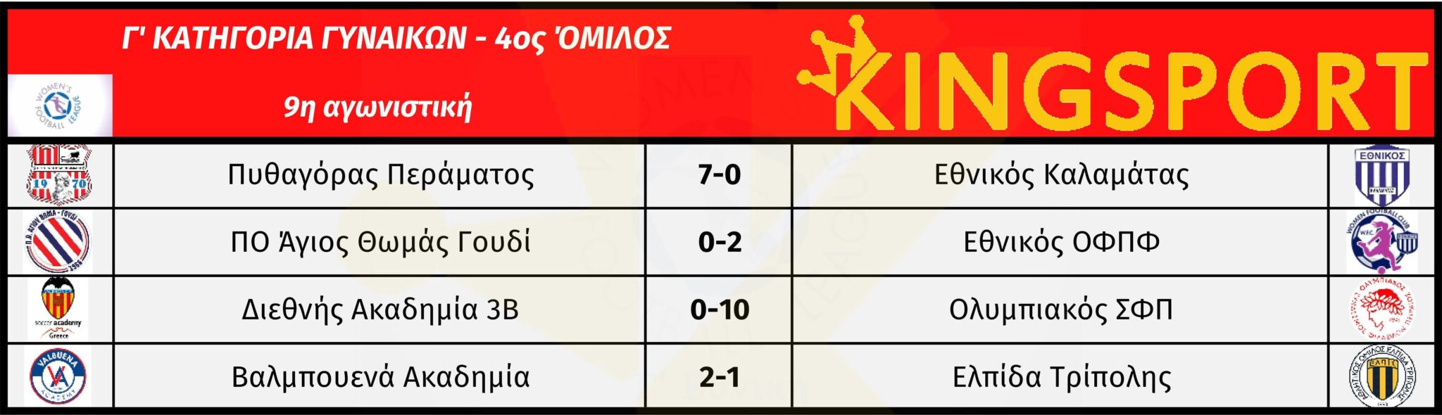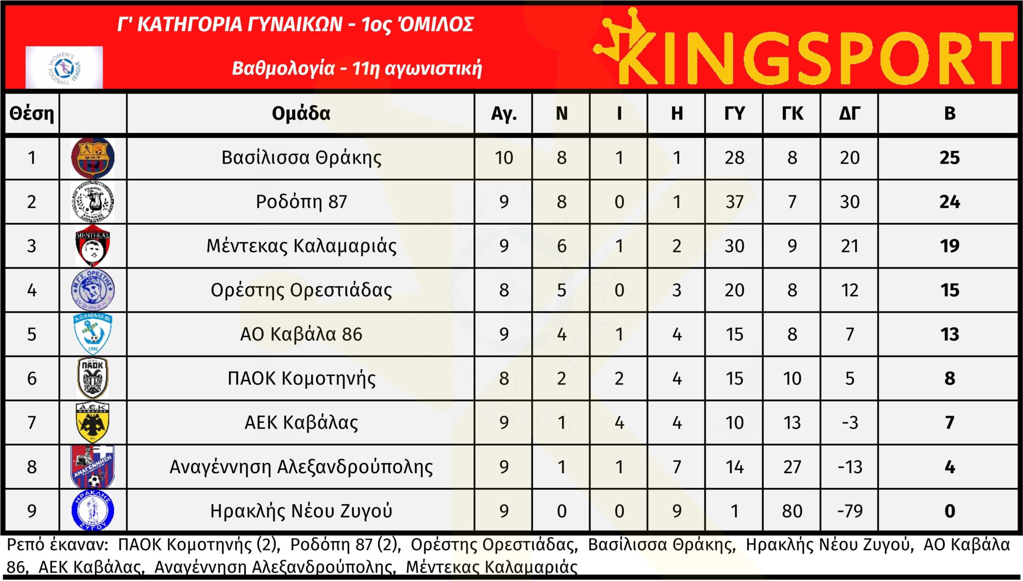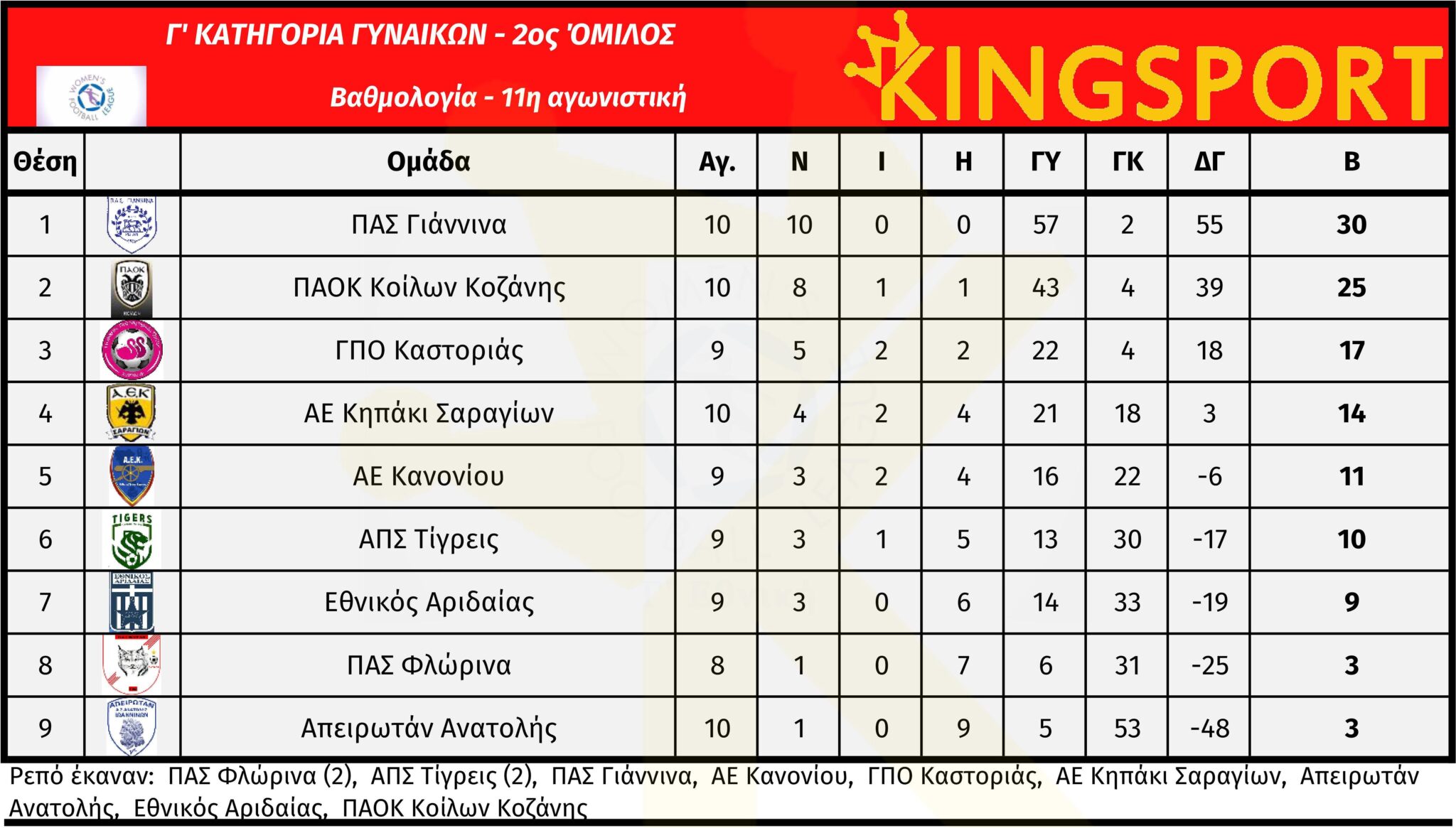 Οι αγώνες του Σαββατοκύριακου 31/1-1/2 στο Περιφερειακό Πρωτάθλημα Γ’ Κατηγορίας Γυναικών 2025-26 και οι βαθμολογίες.