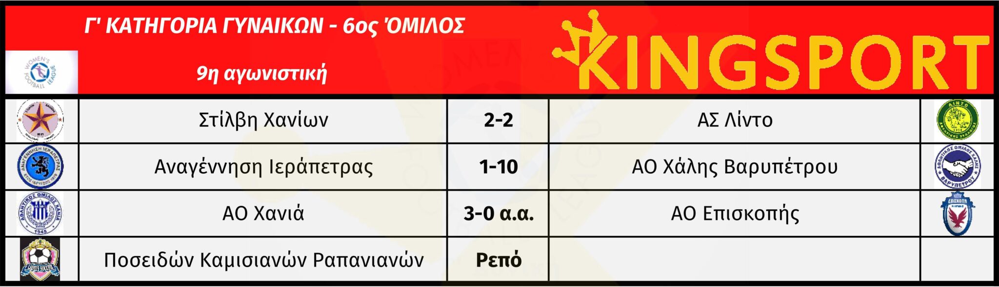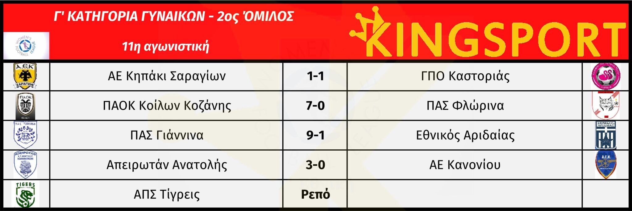 Για το Περιφερειακό Πρωτάθλημα Γ’ Κατηγορίας Γυναικών, διεξήχθησαν οι αγώνες της 11ης αγωνιστικής του 1ου, 2ου, 3ου, 5ου ομίλου και της 9ης αγωνιστικής του 4ου, 6ου, 7ου ομίλου.