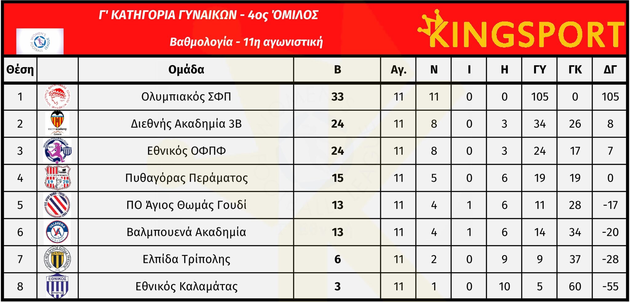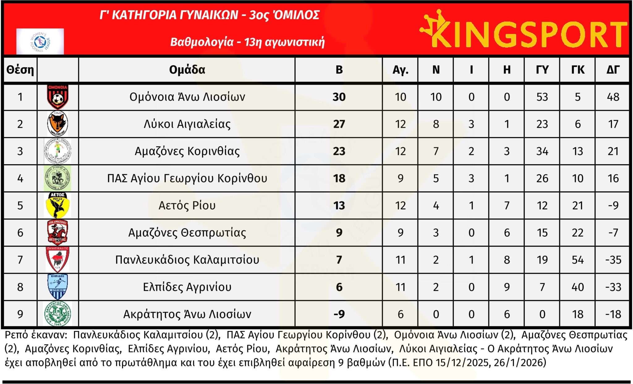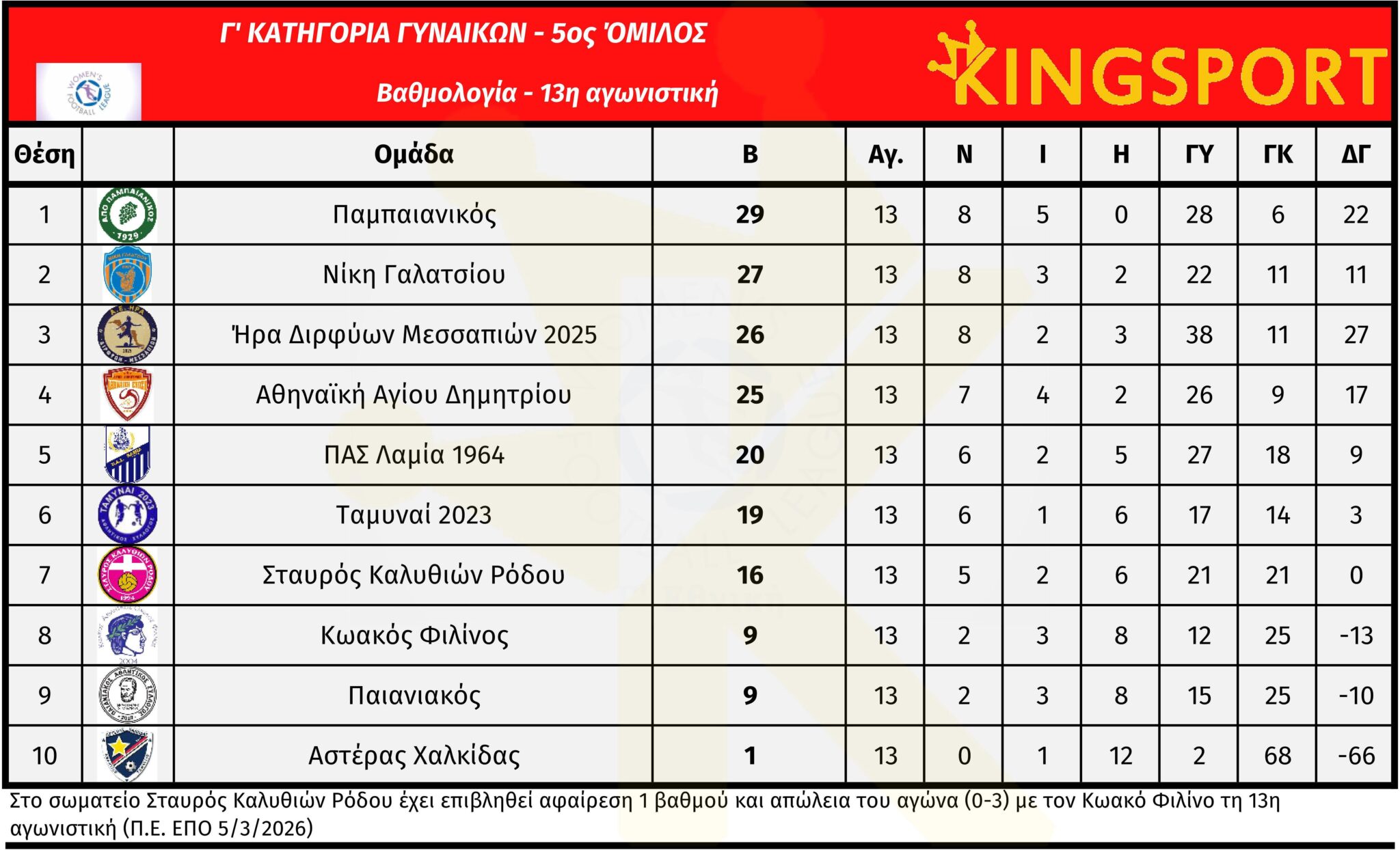 Οι αγώνες του Σαββατοκύριακου 7-8/3 στο Περιφερειακό Πρωτάθλημα Γ’ Κατηγορίας Γυναικών 2025-26 και οι βαθμολογίες.