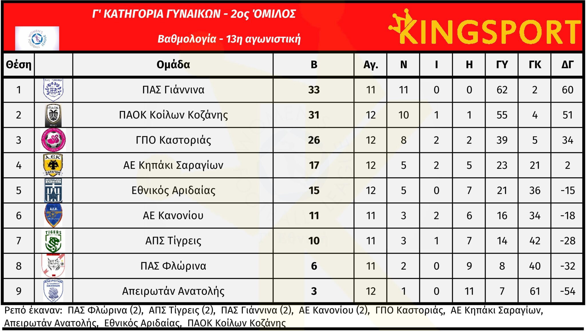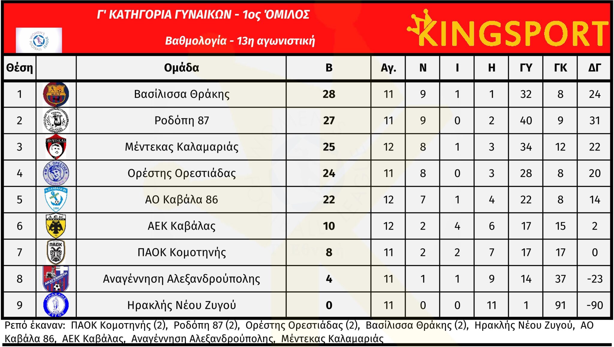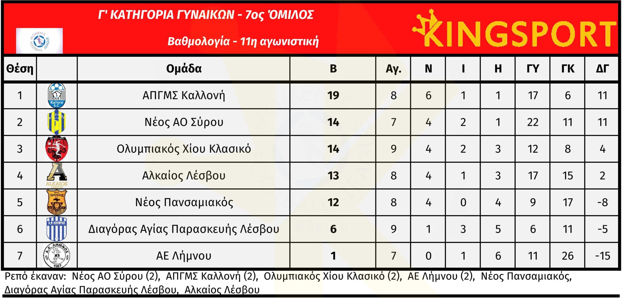 Οι αγώνες του Σαββατοκύριακου 7-8/3 στο Περιφερειακό Πρωτάθλημα Γ’ Κατηγορίας Γυναικών 2025-26 και οι βαθμολογίες.