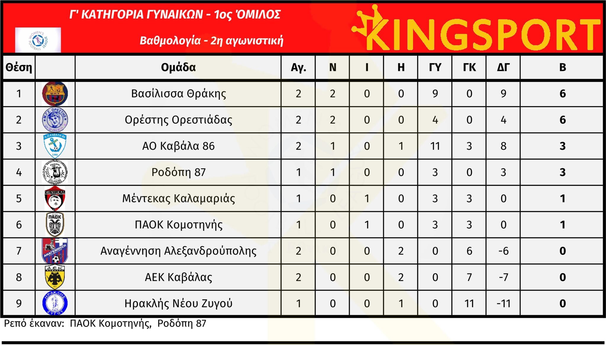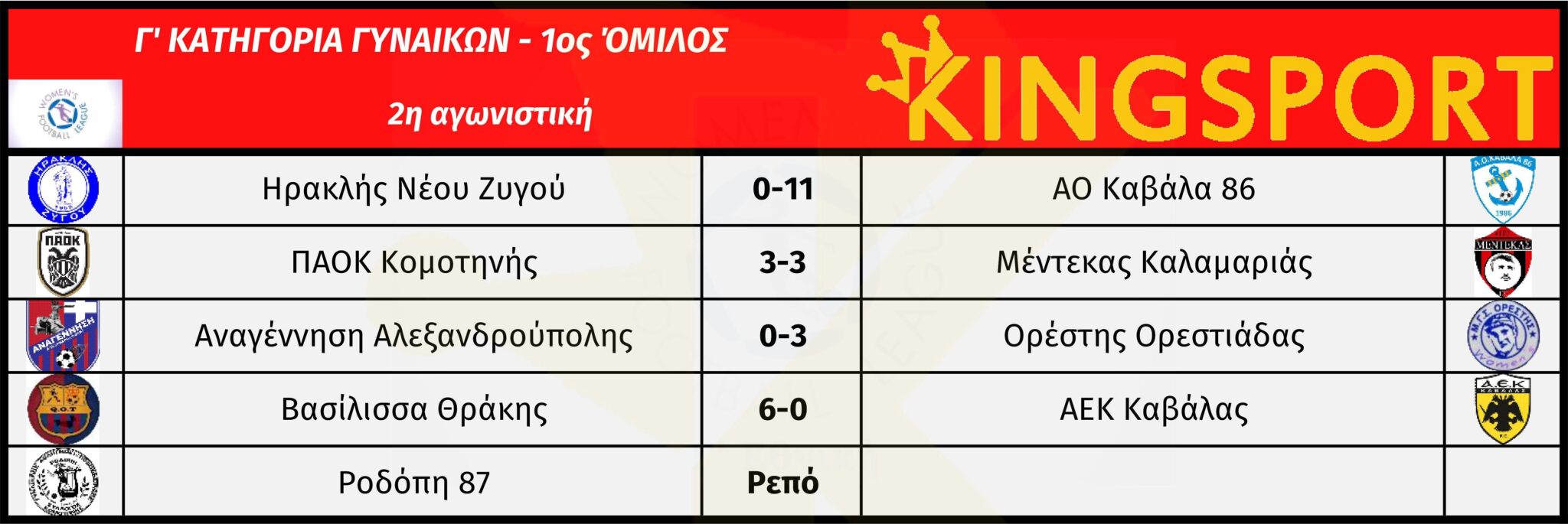 Τα αποτελέσματα του τριημέρου 17-19/10 στο Περιφερειακό Πρωτάθλημα Γ’ Κατηγορίας Γυναικών 2025-26.