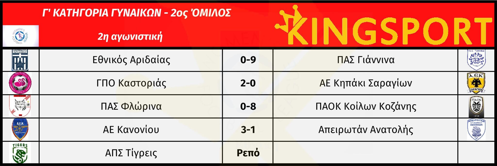 2ος όμιλος: Απειρωτάν Ανατολής – ΠΑΣ Γιάννινα (1η αγωνιστική), ΑΠΣ Τίγρεις – Εθνικός Αριδαίας (1η αγωνιστική-26/10/2025), ΑΕ Κηπάκι Σαραγίων – ΑΕ Κανονίου (1η αγωνιστική-26/10/2025)
