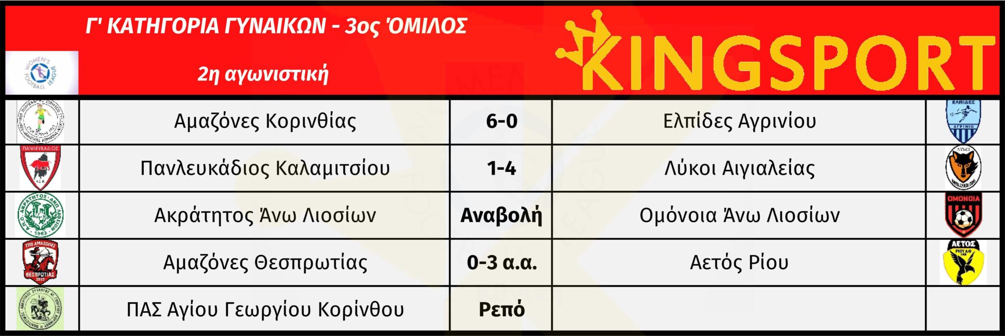 3ος όμιλος: ΠΑΣ Αγίου Γεωργίου Κορίνθου – Ακράτητος Άνω Λιοσίων (1η αγωνιστική-26/10/2025), Ελπίδες Αγρινίου – Αμαζόνες Θεσπρωτίας (1η αγωνιστική-26/10/2025), Ακράτητος Άνω Λιοσίων – Ομόνοια Άνω Λιοσίων (2η αγωνιστική)