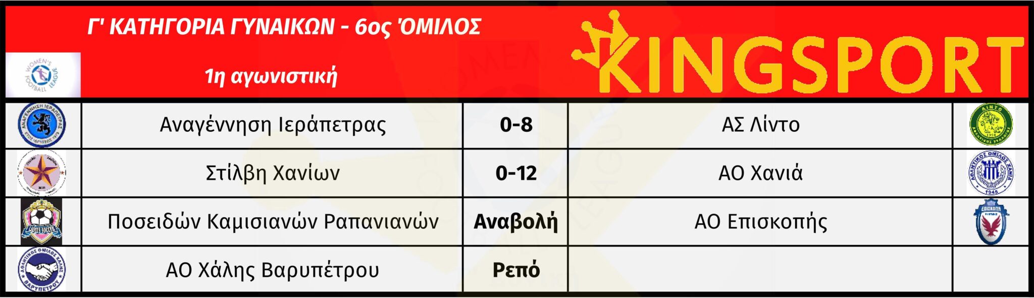 6ος όμιλος: Ποσειδών Καμισιανών Ραπανιανών – ΑΟ Επισκοπής (1η αγωνιστική)