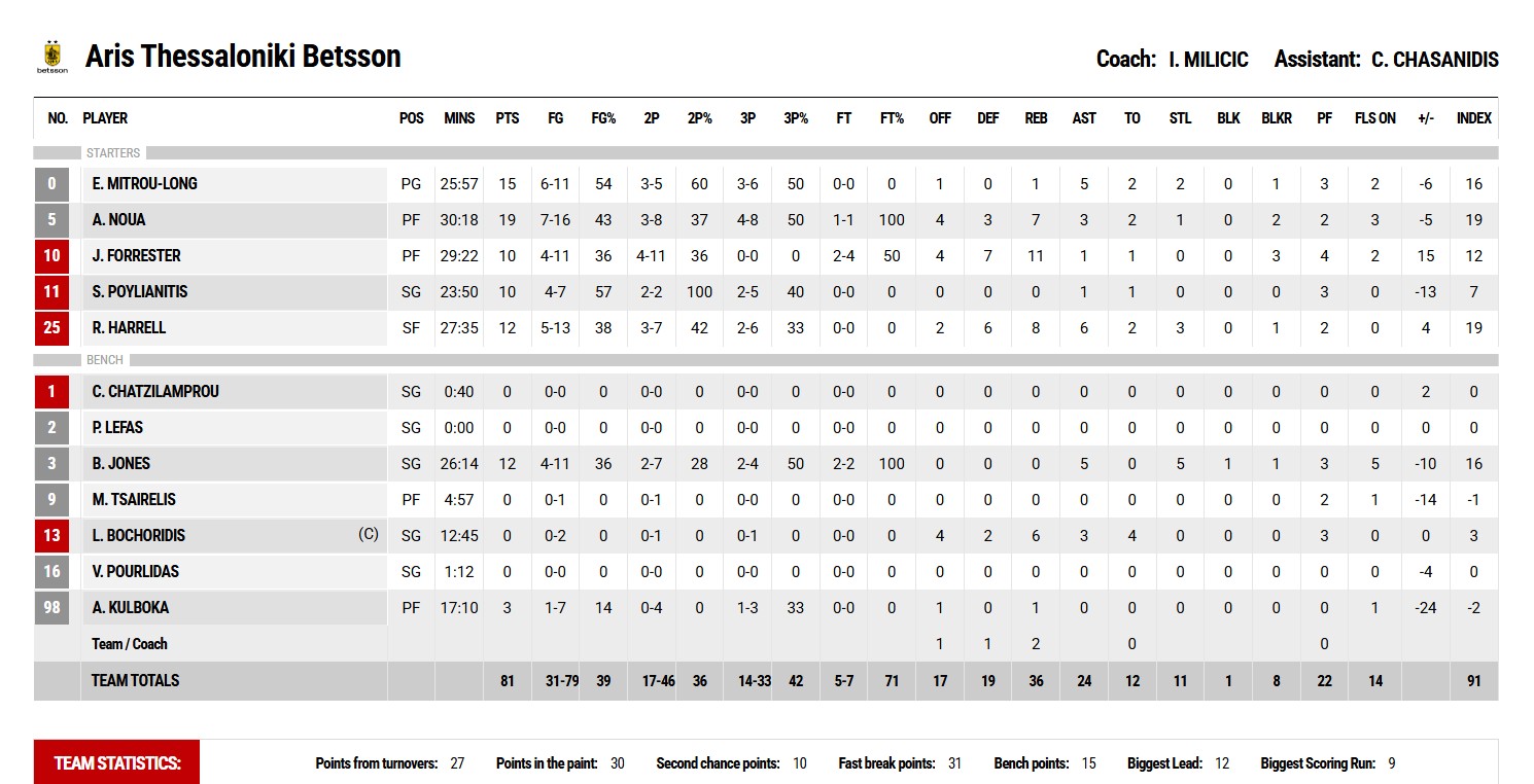 Ο Ολυμπιακός νίκησε με 92-81 τον Άρη στο Στάδιο Ειρήνης και Φιλίας για την 25η αγωνιστική της GBL.