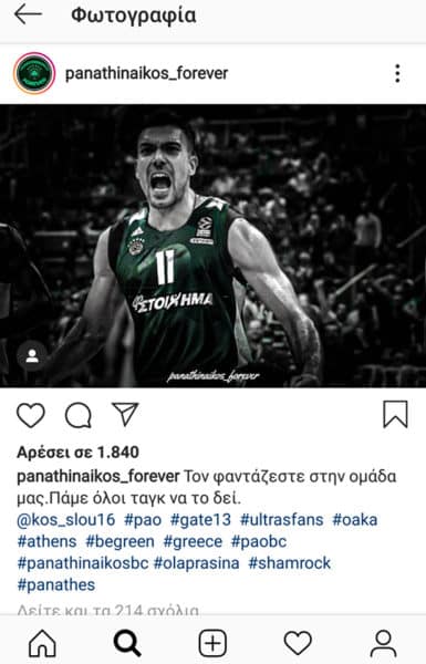 Συγκεκριμένα, μία σελίδα φίλων του Παναθηναϊκού έχει «ντύσει» τον Κώστα Σλούκα στα πράσινα ζητώντας παράλληλα από τον ιδιοκτήτη της ΚΑΕ να κάνει τον διεθνή γκαρντ της Φενέρ της ομάδας το προσεχές καλοκαίρι.