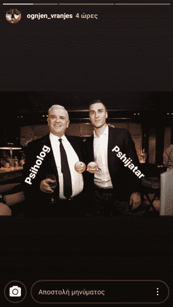 Η χιουμοριστική απάντηση ωστόσο του Βόσνιου δεν άργησε καθώς λίγες ώρες αργότερα ανέβασε μια φωτογραφία στο insragram, στην οποία παρουσιάζει τον ισχυρό άνδρα της Ένωσης ως ψυχολόγο και τον εαυτό του φυσικά ως ψυχίατρο!