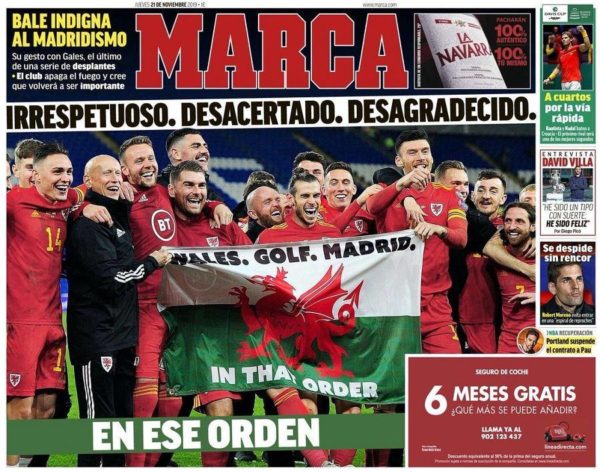 Η συμπεριφορά του Ουαλού δεν έμεινε ασχολίαστη στην Ισπανιά. Η Marca έβαλε πρωτοσέλιδό γράφοντας : «Δίχως σεβασμό, λάθος, αχάριστος… Mε αυτή τη σειρά».