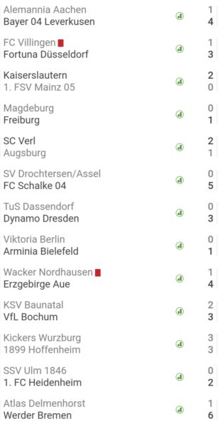 Για το κύπελλο Γερμανίας δεν είχαμε καμία έκπληξη για σήμερα. Τα φαβορί επικράτησαν επί των υποδεέστερων ομάδων άλλα πιο εύκολα κι άλλα πιο δύσκολα.