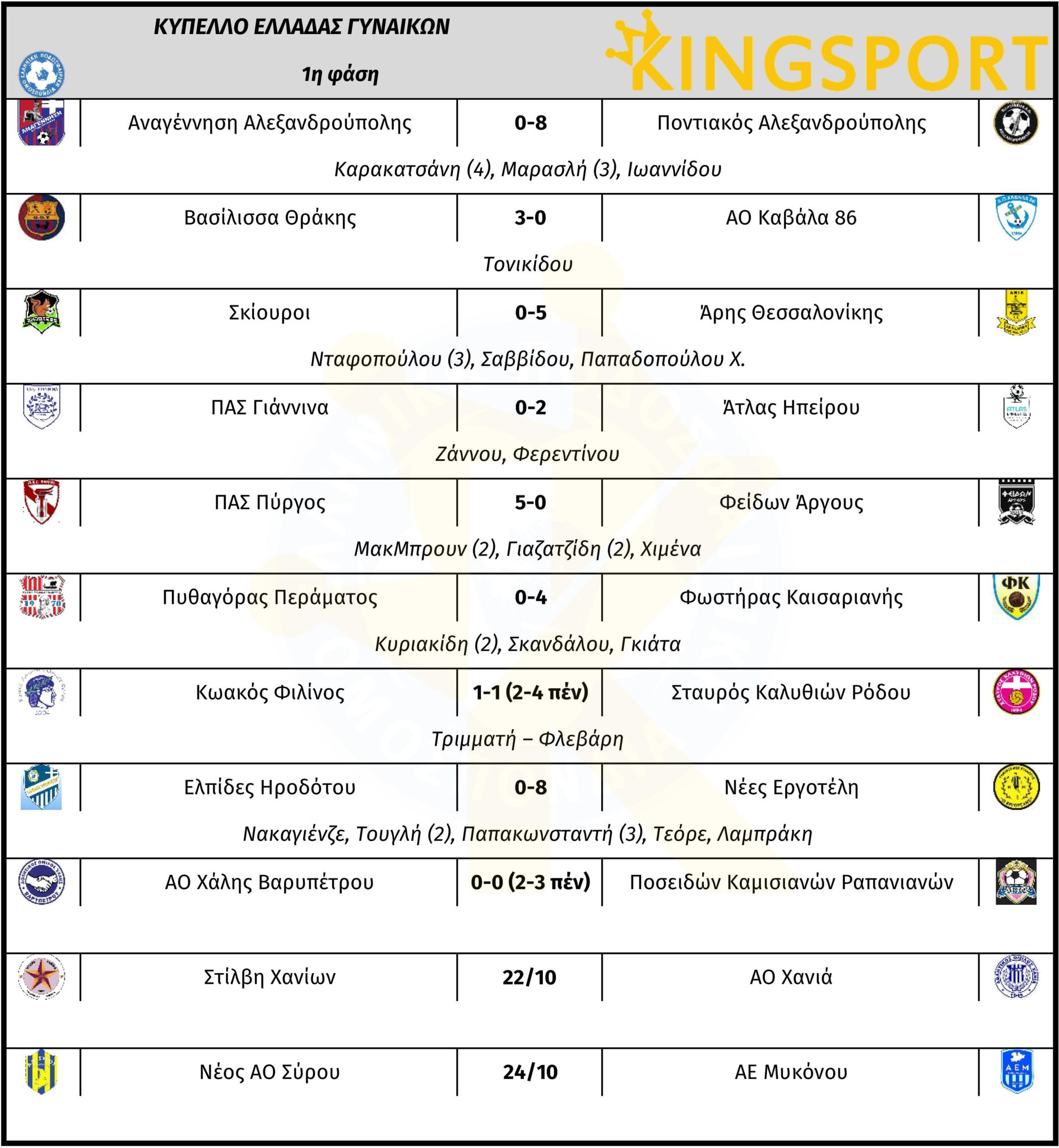 Ξεκίνησε το Κύπελλο Ελλάδας Ποδοσφαίρου Γυναικών, με τον 1ο γύρο και τη διεξαγωγή 9 αγώνων από τους 11.