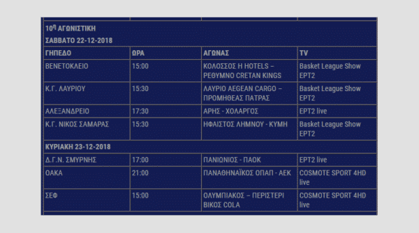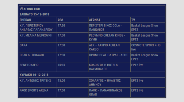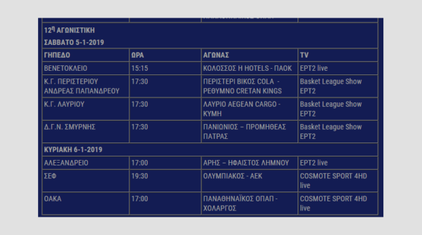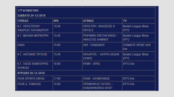 Το Παναθηναϊκός-ΑΕΚ (10η αγ.) στις 23/12 στις 21:00 και το ΠΑΟΚ-Ολυμπιακός (11η αγ.) στις 30/12 στις 17:00.
