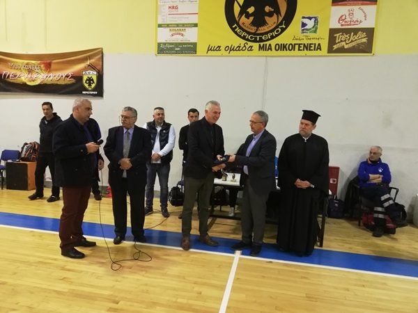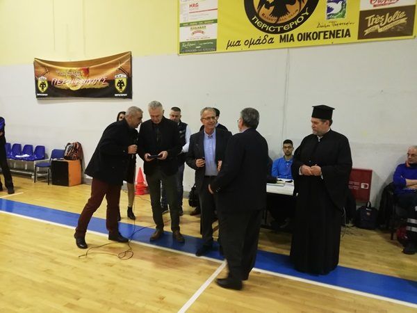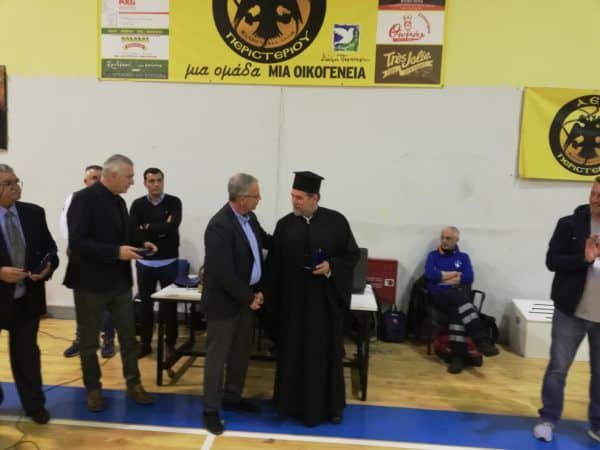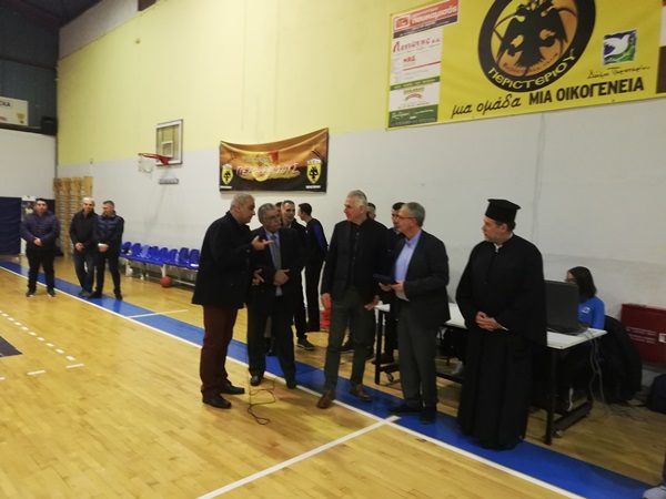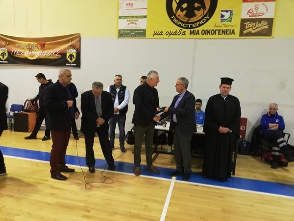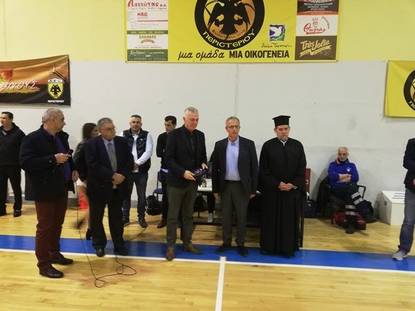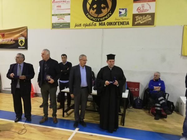 Πριν την αναμέτρηση έγιναν βραβεύσεις προς τον Υπουργό Εθνικής Άμυνας Παναγιώτη Ρήγα, τον Δήμαρχο Περιστερίου, Ανδρέα Παχατουρίδη, τον πάτερ Αντώνη, τον Πρόεδρο της ΑΕΚ Περιστερίου, Αθανάσιο Παπαθάνου, ενώ η ΑΕΚ τίμησε την αθλήτρια της Εθνικής Μαρία Μπρούλια η οποία ξεκίνησε την καριέρα της από το σύλλογο των Δυτικών προαστίων.