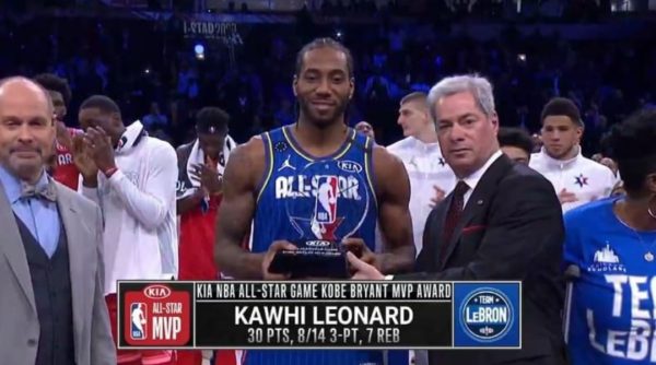 Kawhi Leonard thanks the late Kobe Bryant upon winning the first-ever Kia NBA All-Star Game Kobe Bryant MVP Award. pic.twitter.com/o8YS1jLRy9