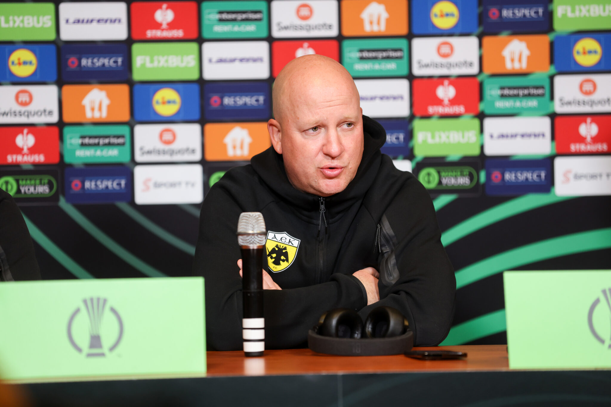 Για το αν η ΑΕΚ θα θυμίζει περισσότερο τα καλοκαιρινά προκριματικά: «Δεν είμαι βέβαιος, γιατί έχει αλλάξει ο τρόπος παιχνιδιού μας. Είμαστε πιο δυναμικοί, πιο επιθετικοί, παίρνουμε πιο πολλά ρίσκα, γνωρίζουμε καλύτερα τον εαυτό μας. Ήταν τότε πολύ σημαντικό να παίξουμε προσεκτικά. Τώρα θα παίξουμε φυσικά για το αποτέλεσμα, αλλά θα ήθελα να παίξουμε και ωραίο ποδόσφαιρο. Εγώ πάντα θα προτιμήσω ένα καλό αποτέλεσμα από ωραίο ποδόσφαιρο».