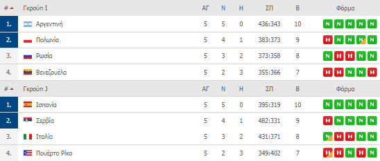 Η τελική βαθμολογία των ομίλων: