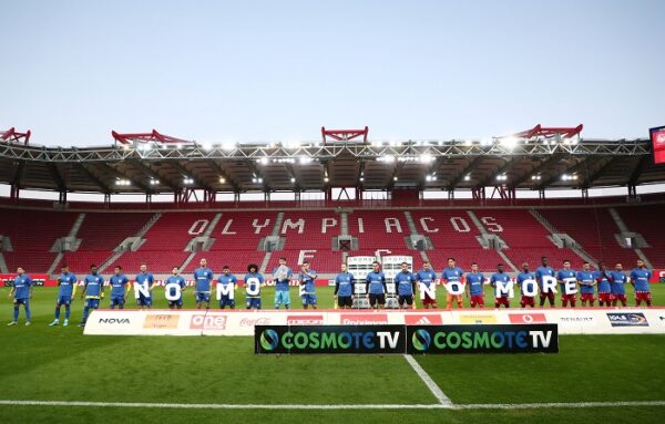 Στο πέταλο των οργανωμένων είχε αναρτηθεί πανό με τις μορφές των 21 θυμάτων της Θύρας 7 στις 8 Φεβρουαρίου 1981, αλλά και πανό στη μνήμη του Άλκη που δολοφονήθηκε στη Θεσσαλονίκη. Πριν τον αγώνα, παίκτες και επιτελεία των δύο ομάδων άφησαν λουλούδια στο μνημείο που είχε τοποθετηθεί μπροστά από το πέταλο της «7», ενώ οι παίκτες κρατούσαν στα χέρια τους γράμματα που σχημάτιζαν τη φράση «No more – Όχι πια».