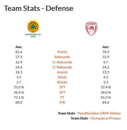 Σε αυτά τα 11 ματς της διοργάνωσης, οι “πράσινοι” δέχονται κατά μέσο όρο 82,4 πόντους από τους αντιπάλους τους, γεγονός που τους φέρνει στους 88 βαθμούς στο σύστημα αξιολόγησης. Η ομάδα που παίζει απέναντι στον Παναθηναϊκό κατεβάζει 37,5 ριμπάουντ κατά μέσο όρο (τρία παραπάνω από τους Πράσινους), ενώ έχει και 18,3 ασίστ, δείγμα του ότι ο Παναθηναϊκός ακόμα να… αναχαιτίσει τεχνικά τον αντίπαλό του, την ώρα βέβαια που οι κατοχές είναι περισσότερες στα ματς του και οι εν λόγω αριθμοί είναι ως ένα σημείο λογικοί.