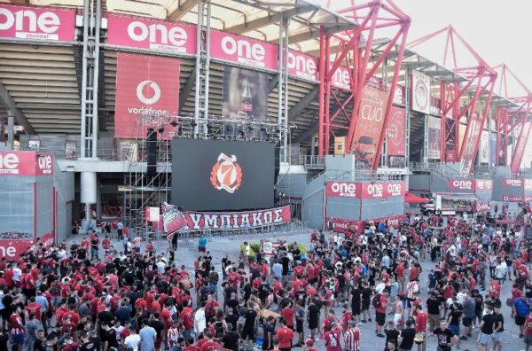 Έξω από το γήπεδο, είχαν συγκεντρωθεί πολλοί φίλοι του Ολυμπιακού για να γιορτάσουν μαζί με την ομάδα την κατάκτηση του πρωταθλήματος.