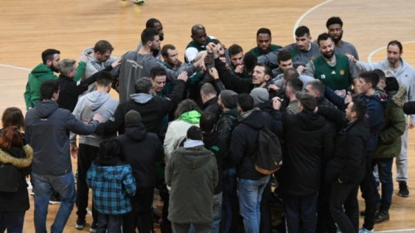 Δίπλα στους παίκτες του «τριφυλλιού» βρέθηκαν επίσης και περίπoυ 50 φίλαθλοι του Παναθηναϊκού οι οποίοι έδωσαν το παρών στο κλειστό του ΟΑΚΑ πριν από την πρόπονηση της ομάδας έτσι ώστε να εμψυχώσουν τον Ρικ Πιτίνο και τους παίκτες του ενόψει του αυριανού ντέρμπι με τον Ολυμπιακό (4/1, 21:00).