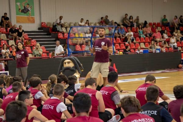 Οι 200 νεαροί αθλητές με τους προπονητές τους Ηλία Μάριο Οικονόμου και Δημήτρη Μίαρη, υποδέχτηκαν τον Θανάση Μολυβδακαι τον Γιώργο Διαμαντάκο μέσα σε αποθέωση και είχαν την ευκαιρία να περάσουν πολύ όμορφες στιγμές.
