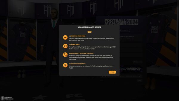 Έτσι, όσοι αγοράσετε το FM 2024 και κάνετε την εγκατάσταση του, στην αρχή του, εκτός από τη γνωστή επιλογή να ξεκινήσετε ένα νέο παιχνίδι-καριέρα, θα σας δίνει την ευκαιρία να συνεχίζετε την καριέρα σας, το προηγούμενο save σας, από τον τίτλο της περασμένης χρονιάς, δηλαδή, του 2023.