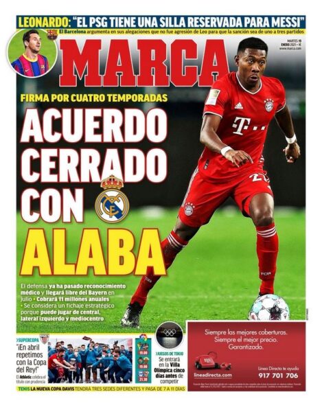 Σύμφωνα με τη μαδριλένικη και πάντα έμπιστη εφημερίδα σε θέματα της Ρεάλ Μαδρίτης, “MARCA”, η «βασίλισσα» ήρθε σε συμφωνία με τον Νταβίντ Αλάμπα για τετραετές συμβόλαιο με απολαβές ύψους 11.000.000 ευρώ.