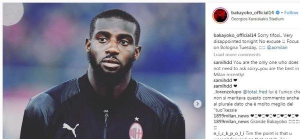Συναντήσαμε τον Tiemoue Bakayoko στη μικτή ζώνη του “Γεώργιος Καραϊσκάκης”. Παρουσιάστηκε απρόθυμος για δηλώσεις μετά την ήττα της Μίλαν και τον αποκλεισμό από τον Ολυμπιακό. «Συγνώμη φίλε μου δεν θέλω να μιλήσω σήμερα» είπε με χαμηλή φωνή ενώ λίγο μετά έστελνε μήνυμα στους φίλους της Ιταλικής ομάδας μέσω Instagram ζητώντας συγνώμη για την εμφάνιση και στο άσχημο αποτέλεσμα: «Συγνώμη τιφόζι! Πολύ απογοητευμένος απόψε, δεν έχουμε δικαιολογία!Και τώρα Μπολόνια!» έγραψε ο Γάλλος αμυντικός χαφ με πολλούς φίλους της Μίλαν να τον αντιμετωπίζουν με συμπάθεια και άλλους να τον …κράζουν…