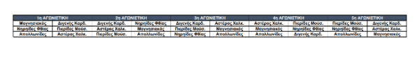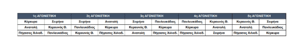 Το πρόγραμμα του 5ου ομίλου (2 γύροι):
