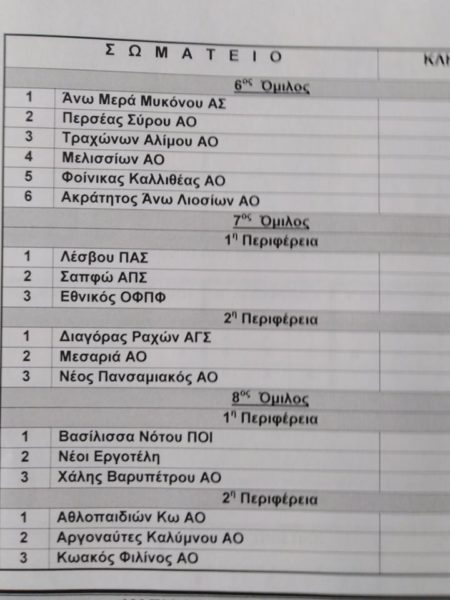 Το πρόγραμμα του 7ου ομίλου 1η περιφέρεια (4 γύροι):