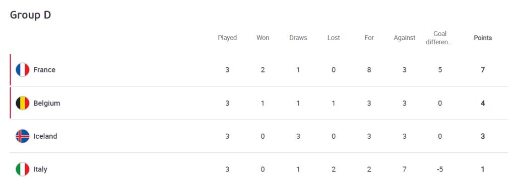 Στο “Manchester City Academy Stadium” του Μάντσεστερ, το Βέλγιο επικράτησε με 1-0 της Ιταλίας και με 4 βαθμούς τερμάτισε στη 2η θέση του ομίλου. Το νικητήριο γκολ πέτυχε η Ντε Κάινι στο 49′. Έτσι, το Βέλγιο θα παίξει στα προημιτελικά με τη Σουηδία, πρώτη του 3ου ομίλου (22/7). Η Ιταλία τερματίζει με 1 βαθμό στην 4η θέση του ομίλου.