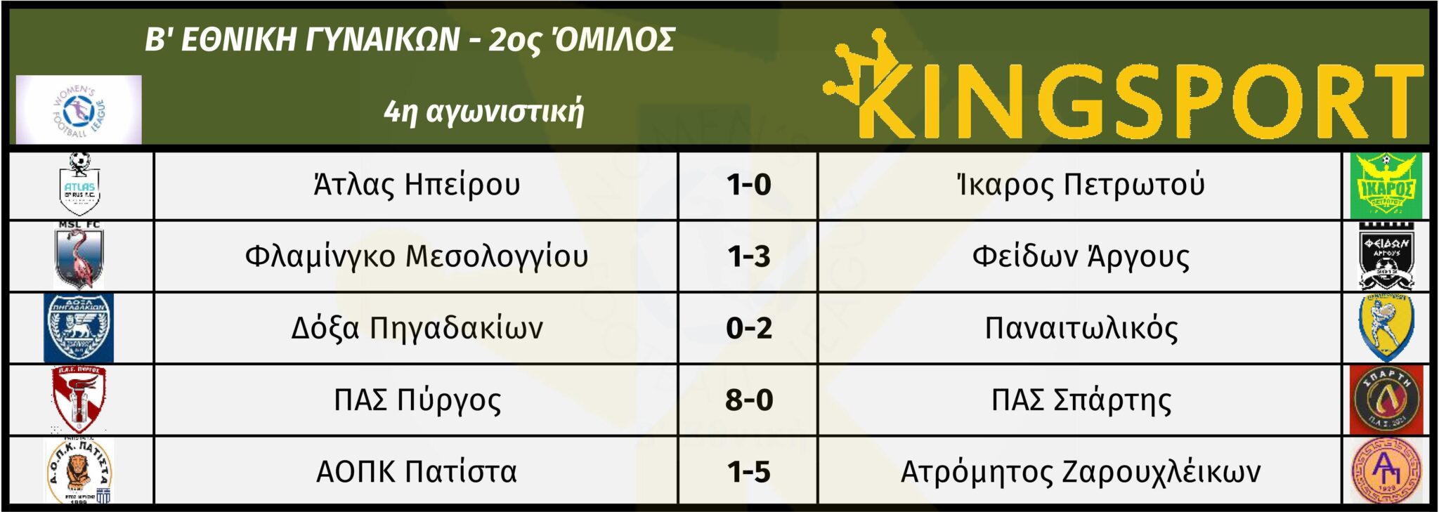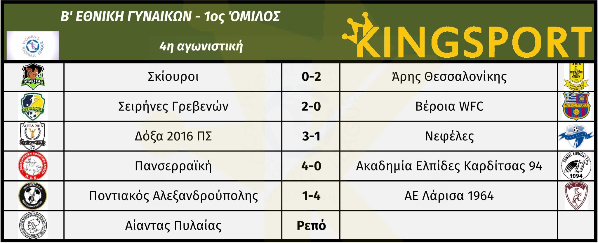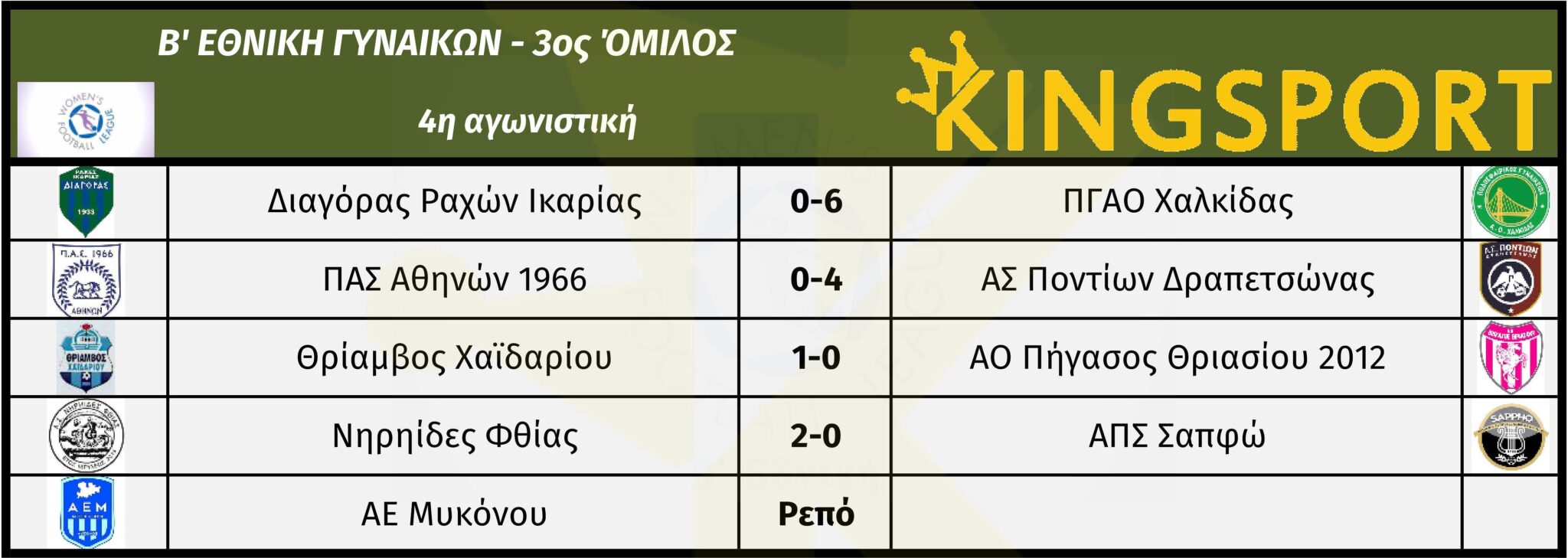 Β’ Εθνική Γυναικών: Τα αποτελέσματα της 4ης αγωνιστικής