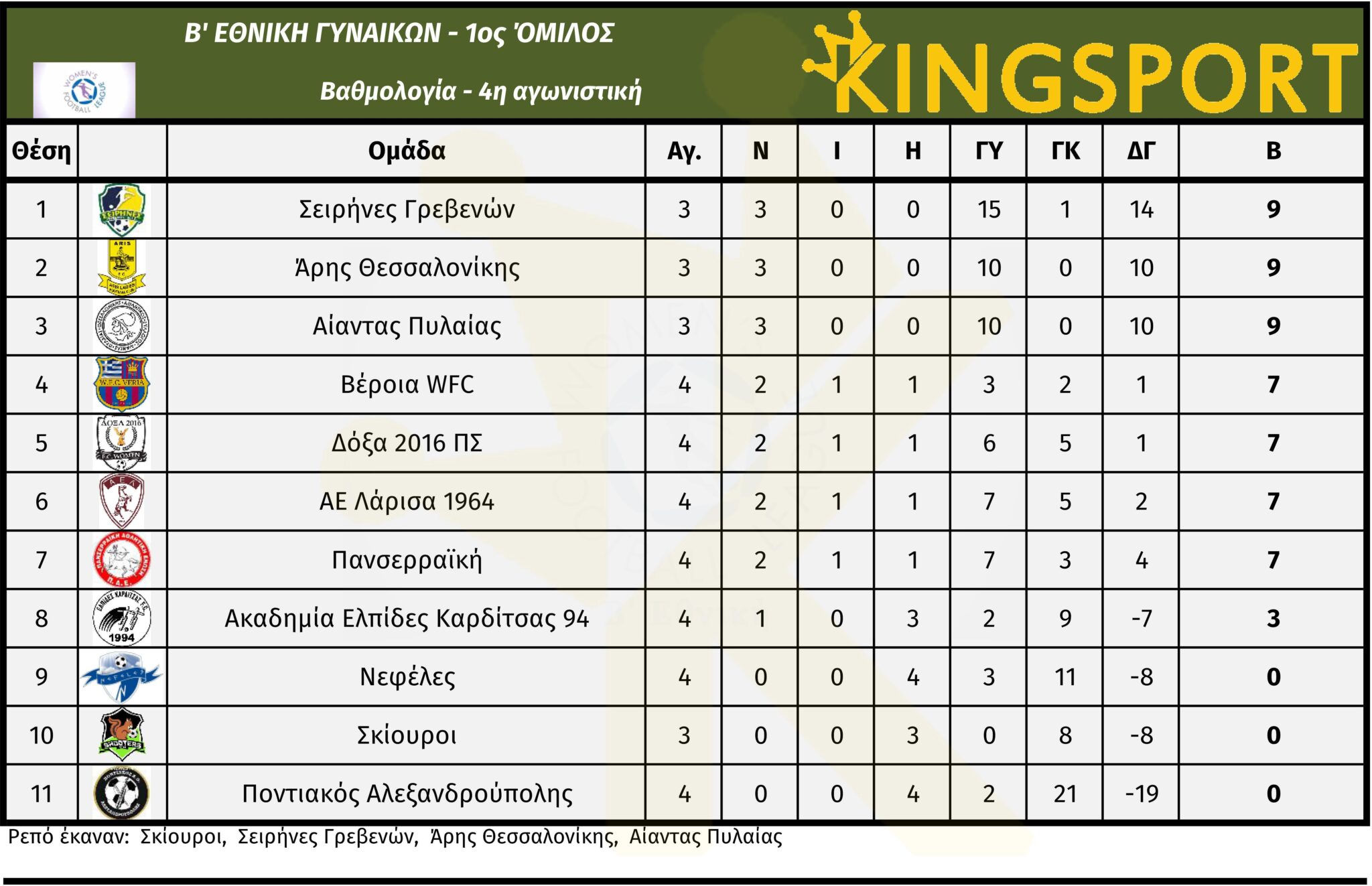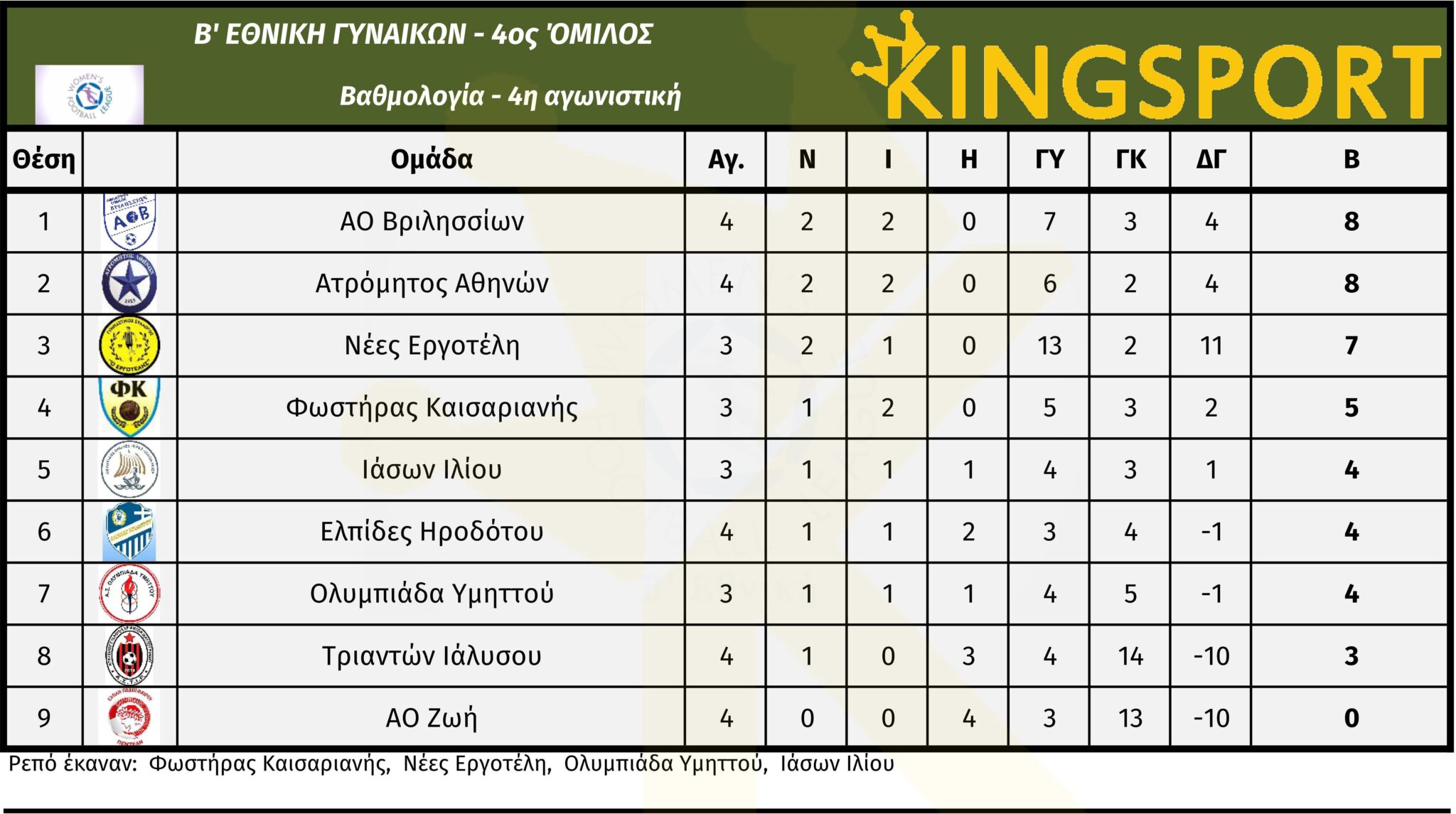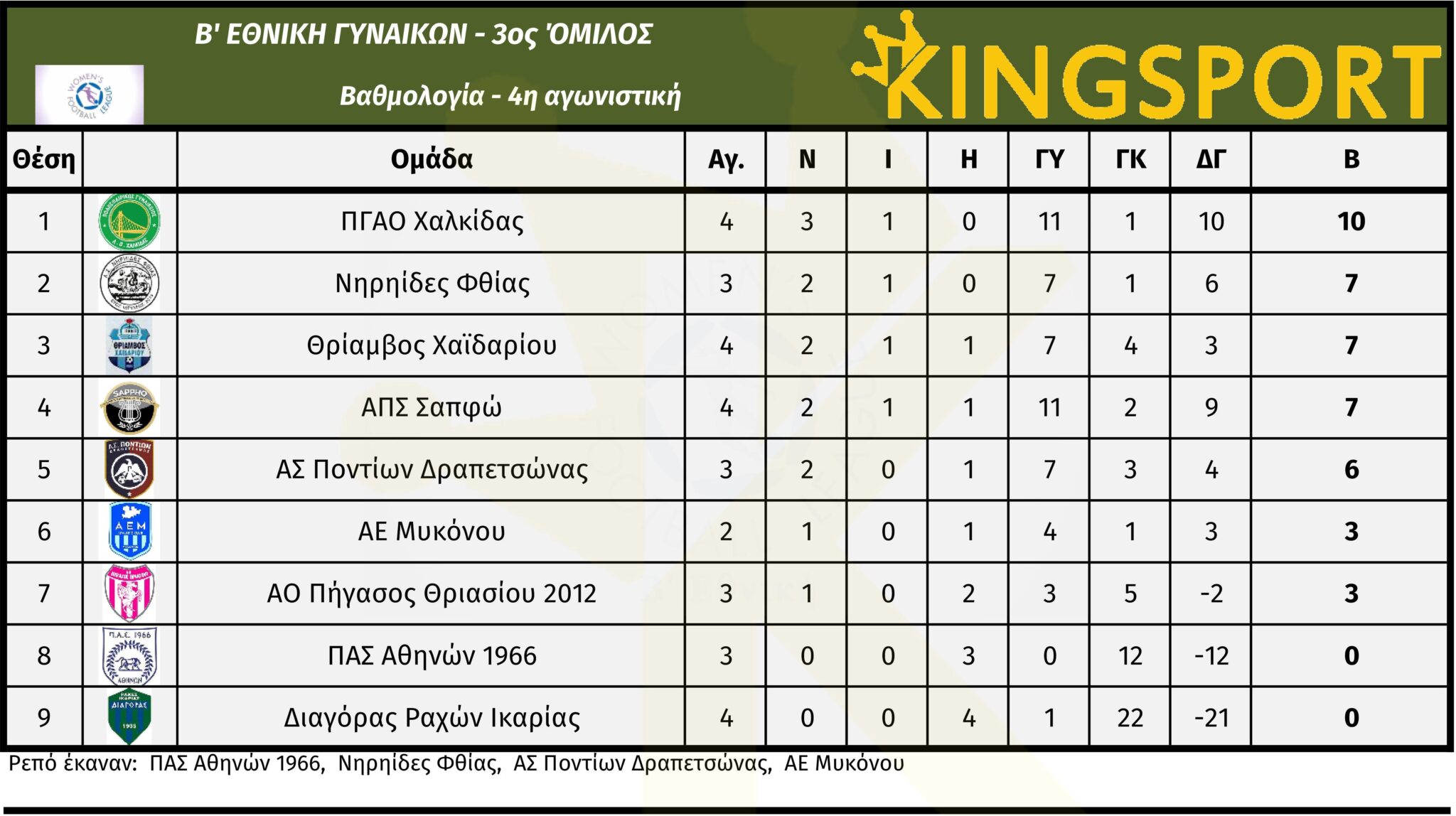 Β’ Εθνική Γυναικών: Τα αποτελέσματα της 4ης αγωνιστικής