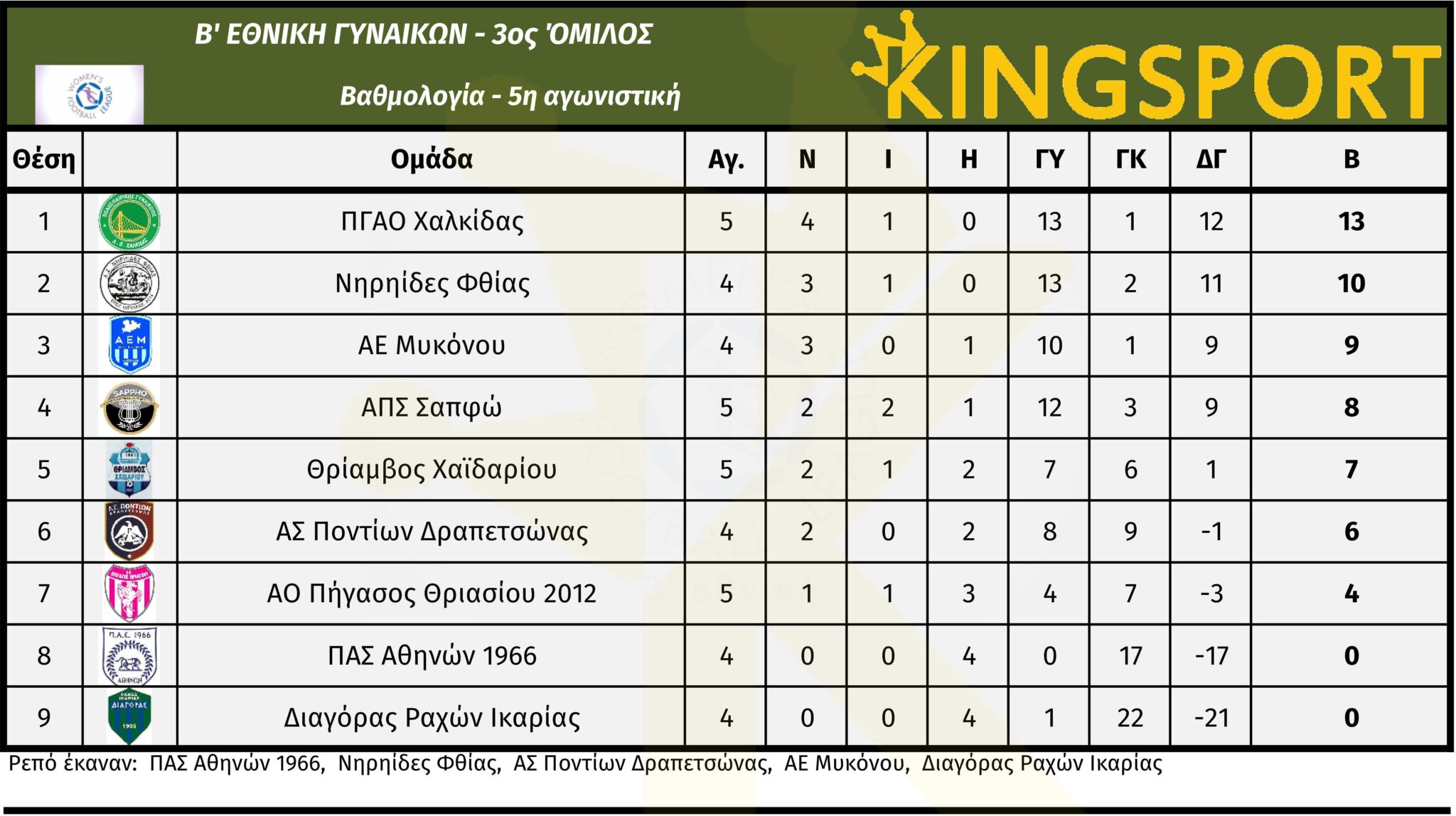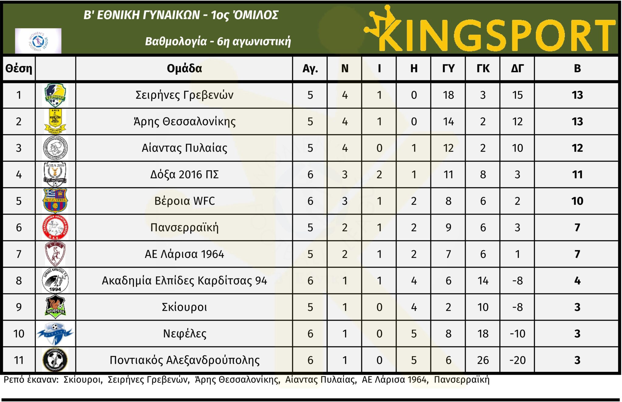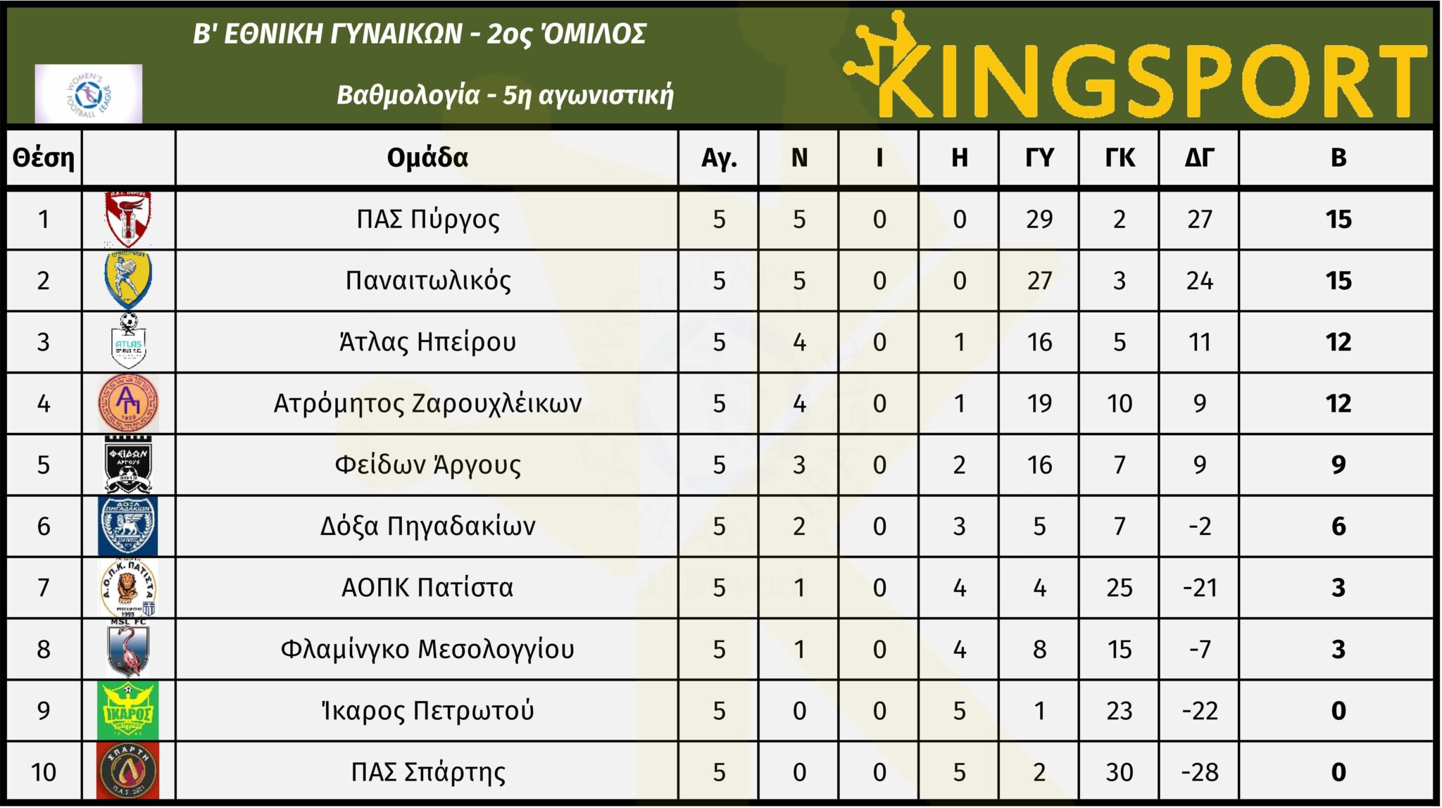 Τα αποτελέσματα της Κυριακής 16/11 στη Β’ Εθνική Γυναικών 2025-26.