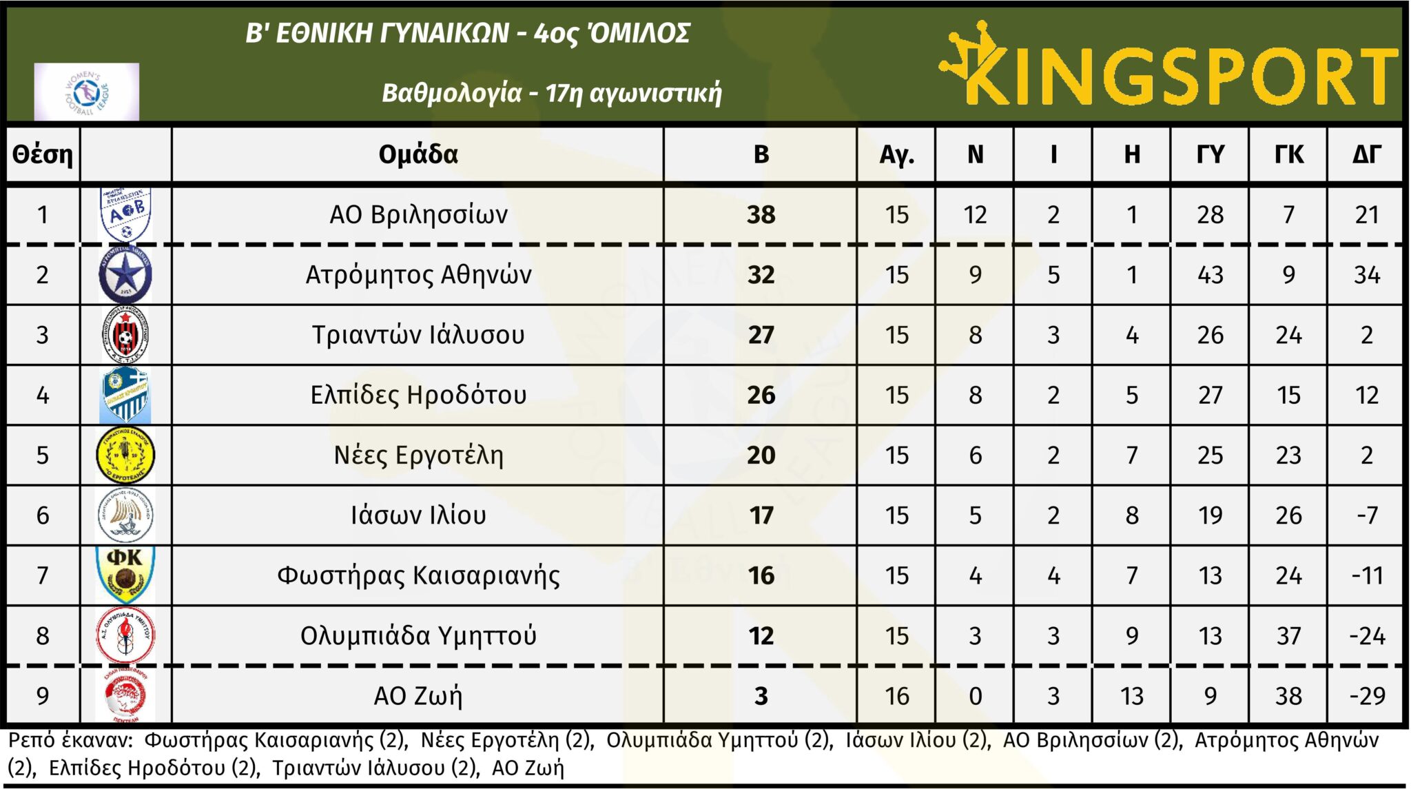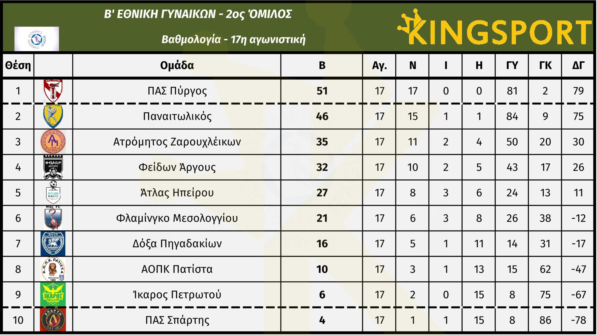 Τα αποτελέσματα της Κυριακής 19/4 στη Β’ Εθνική Γυναικών 2025-26 και οι βαθμολογίες.