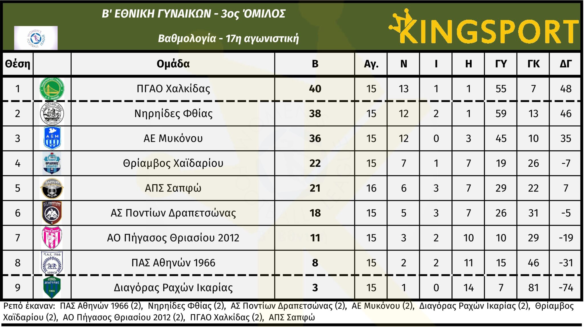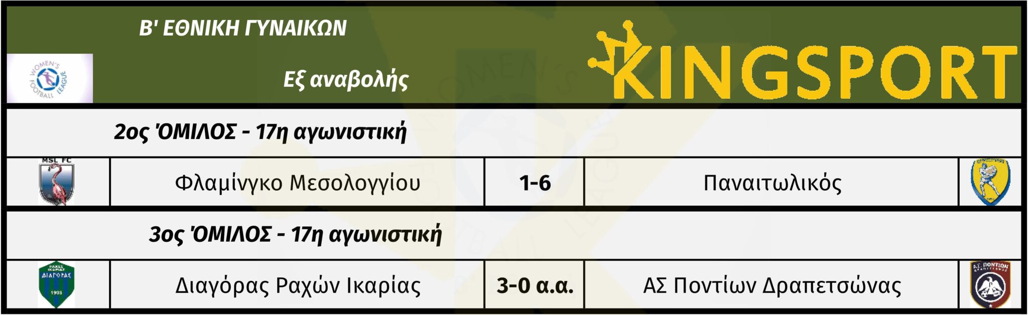 Β’ Εθνική Γυναικών: Τα αποτελέσματα της Κυριακής 19/4