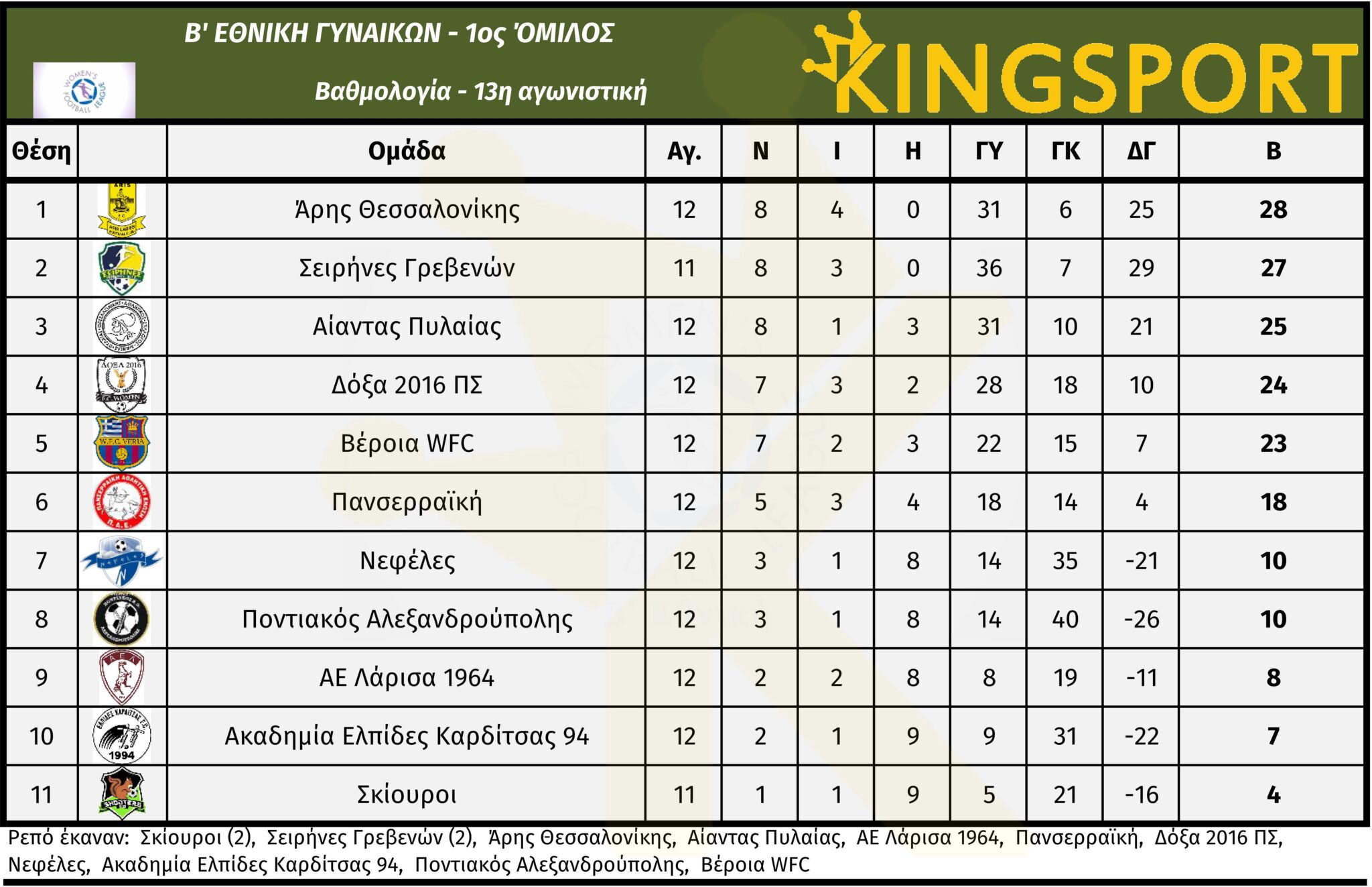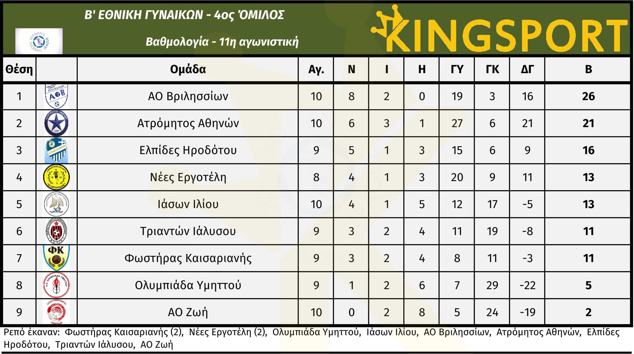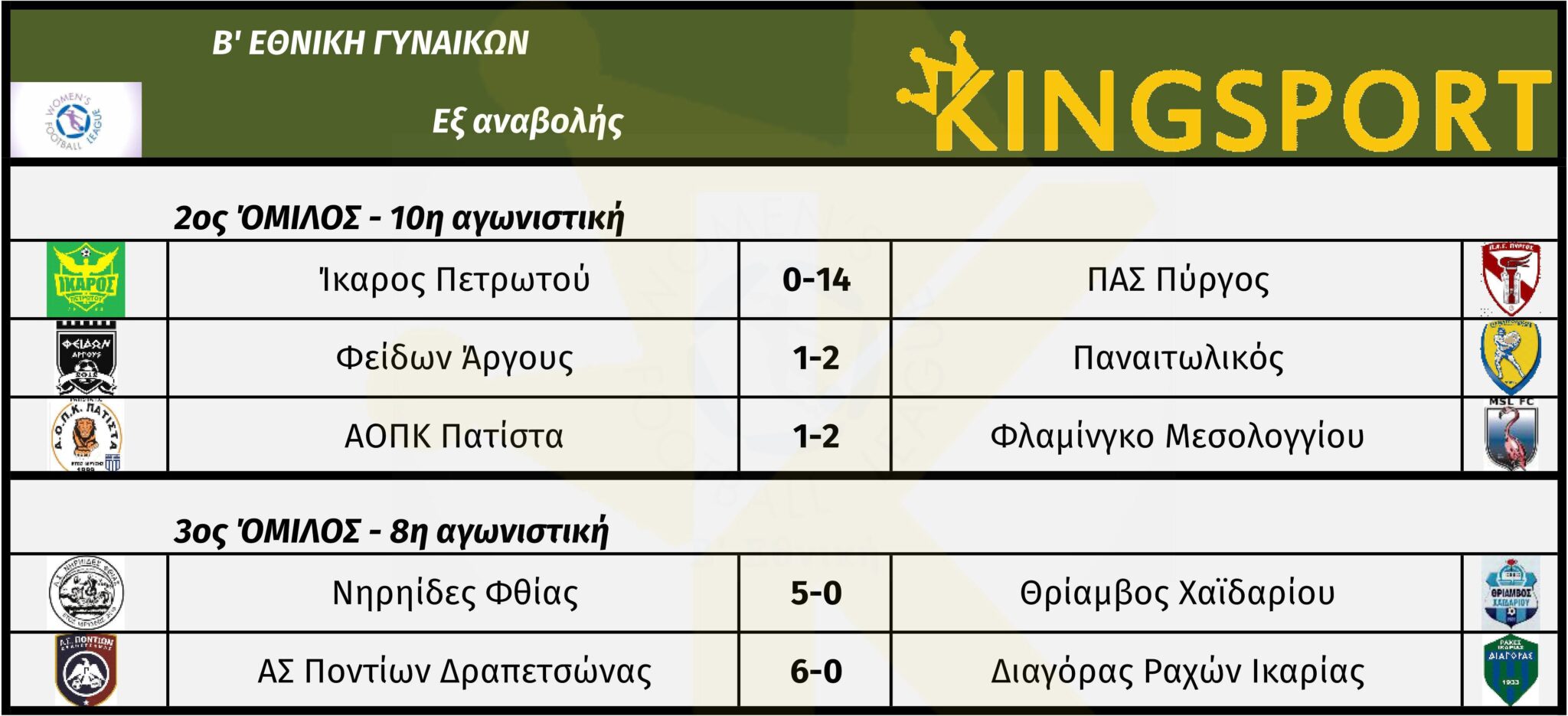 Τα αποτελέσματα του Σαββατοκύριακου 24-25/1 στη Β’ Εθνική Γυναικών 2025-26 και οι βαθμολογίες.