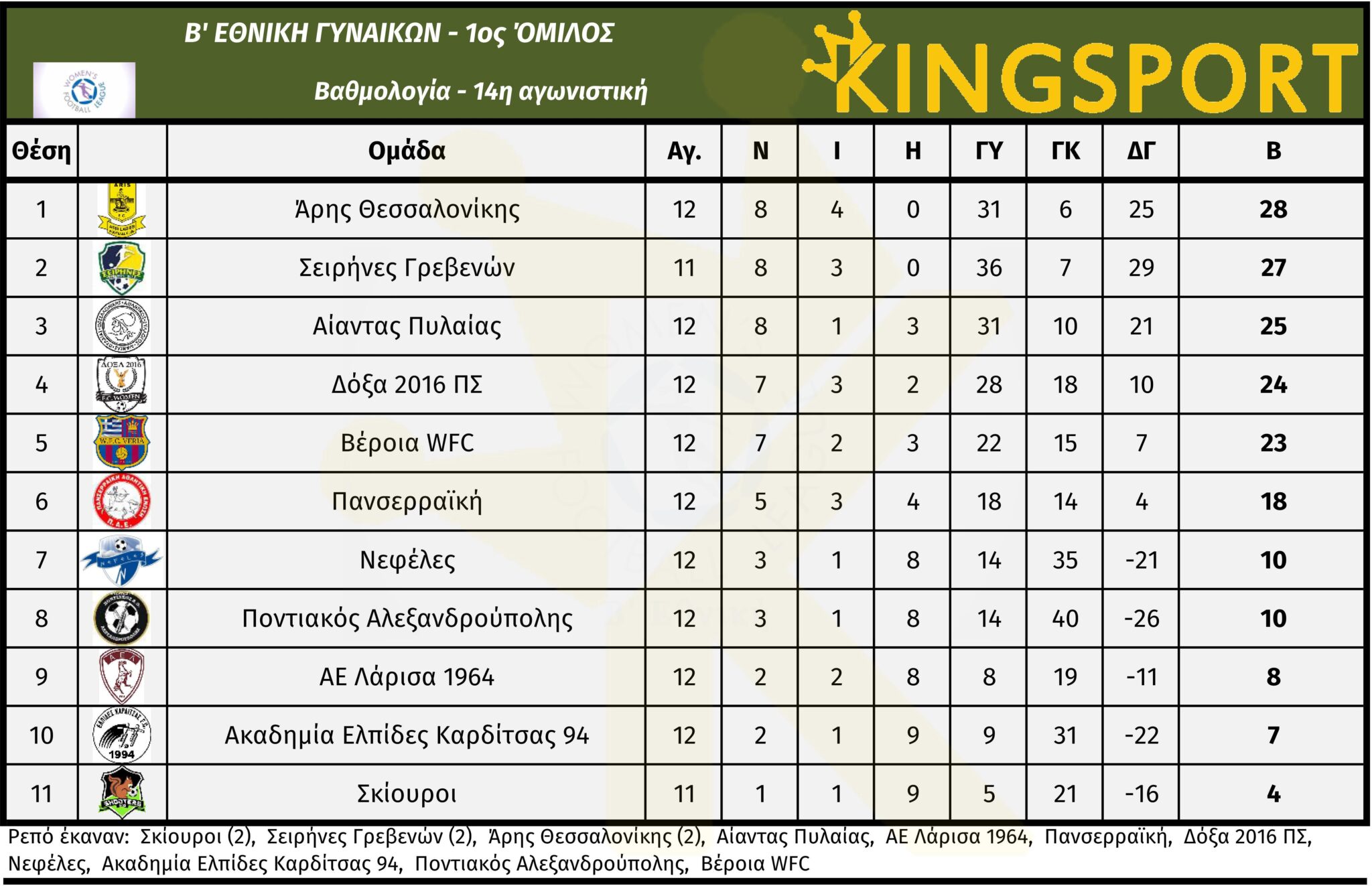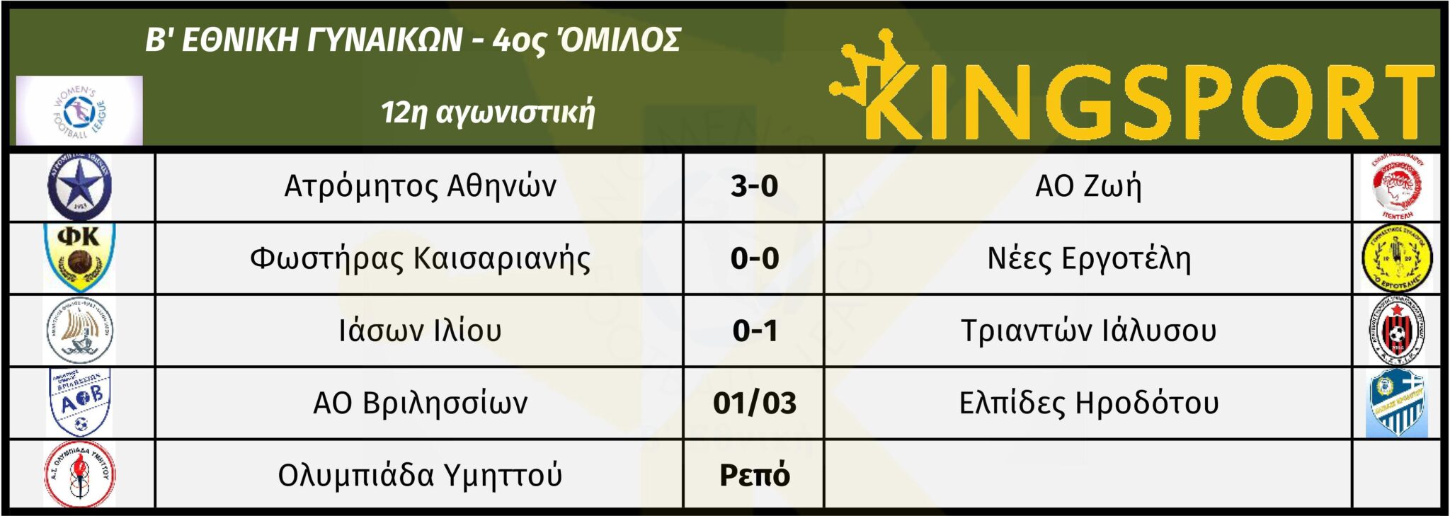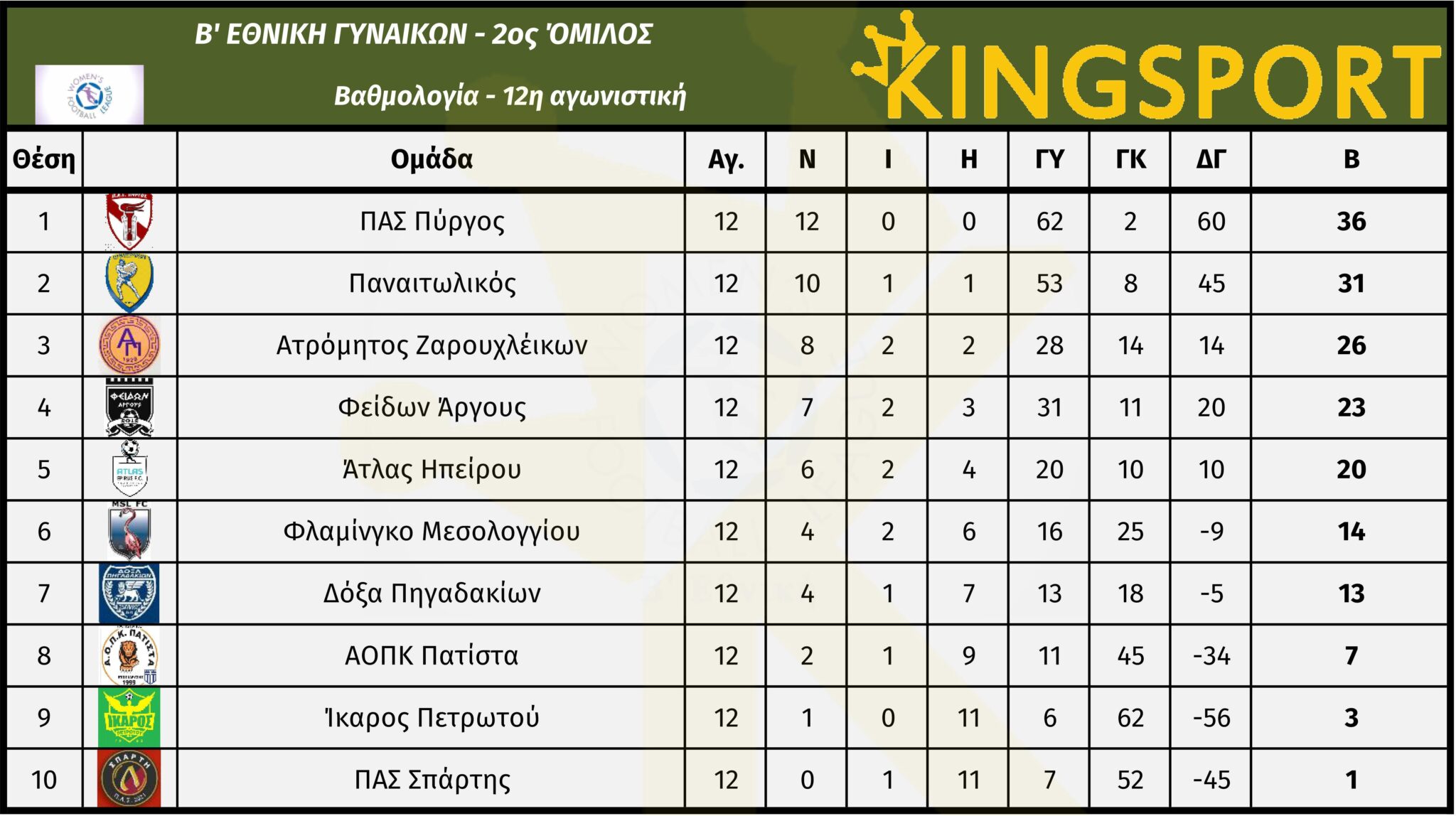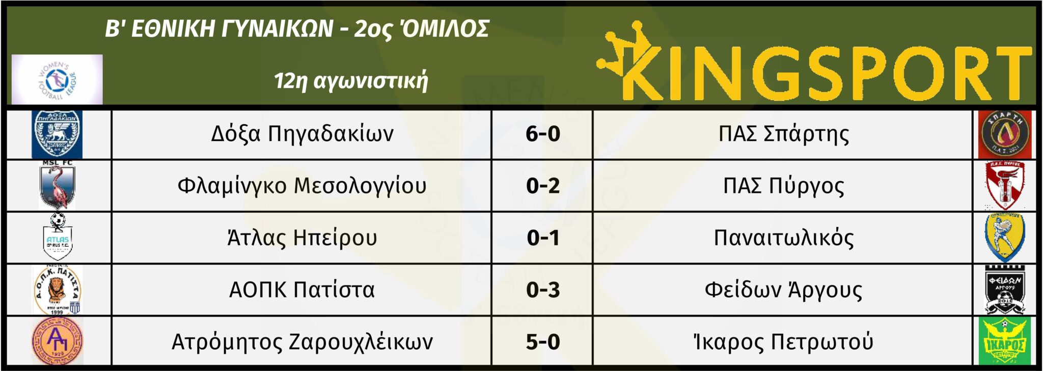 Τα αποτελέσματα του Σαββατοκύριακου 31/1-1/2 στη Β’ Εθνική Γυναικών 2025-26 και οι βαθμολογίες.