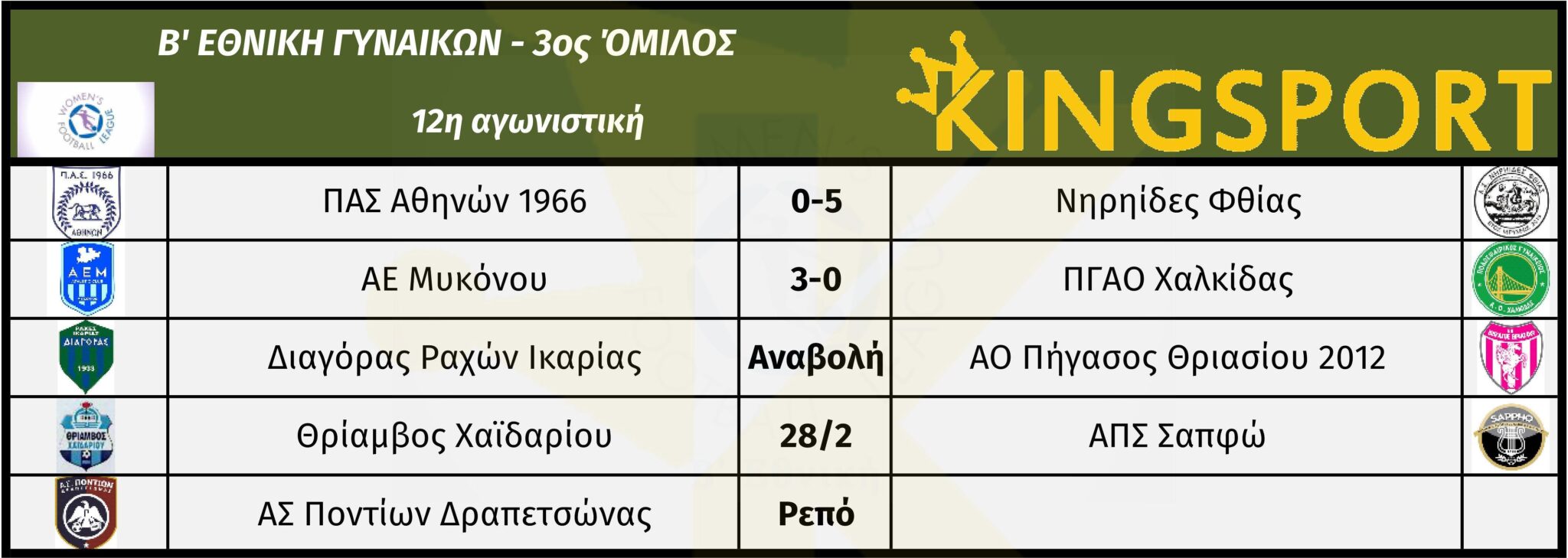 3ος όμιλος: Διαγόρας Ραχών Ικαρίας – ΑΠΣ Σαπφώ (10η αγωνιστική), Διαγόρας Ραχών Ικαρίας – ΑΟ Πήγασος Θριασίου 2012 (12η αγωνιστική), Θρίαμβος Χαϊδαρίου – ΑΠΣ Σαπφώ (12η αγωνιστική-28/2/2026)