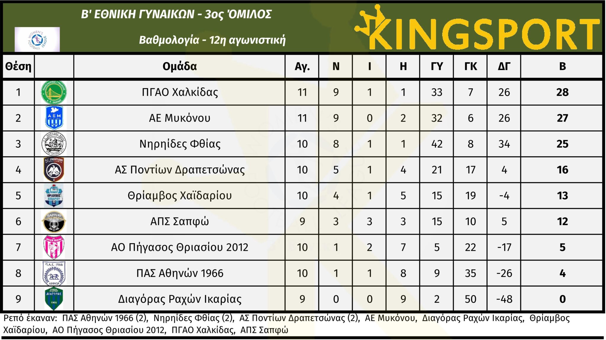 Β’ Εθνική Γυναικών: Τα αποτελέσματα του Σαββατοκύριακου 31/1-1/2